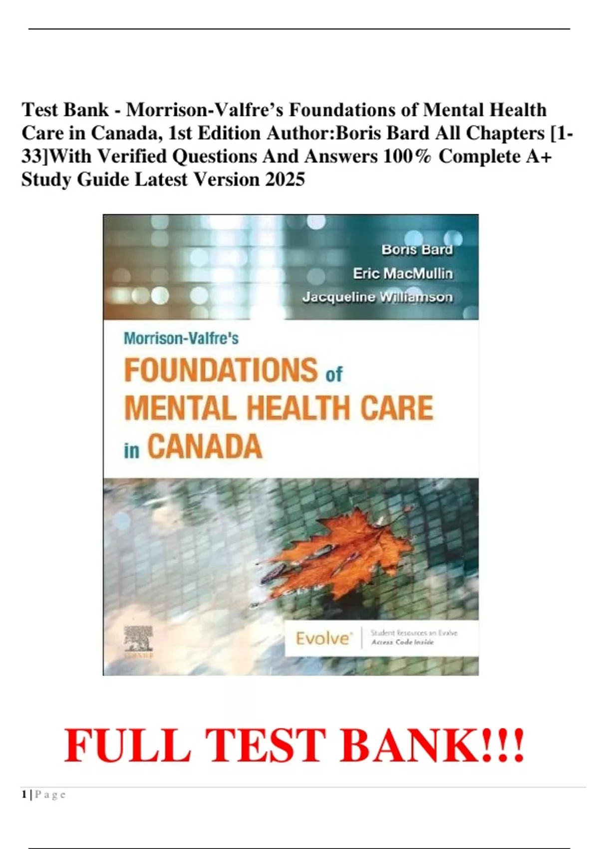 Morrison-Valfre’s Foundations Of Mental Health Care In Canada, First Edition