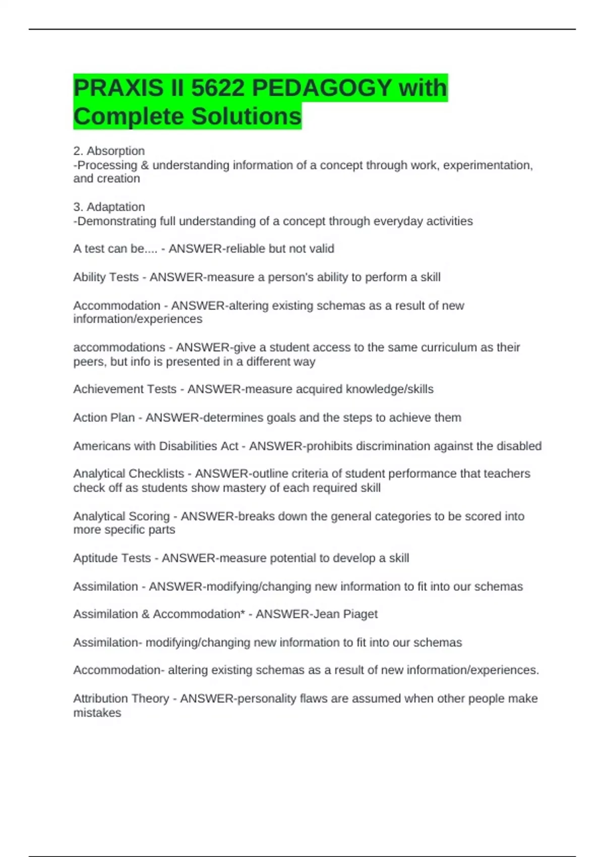 PRAXIS II 5622 PEDAGOGY with Complete Solutions