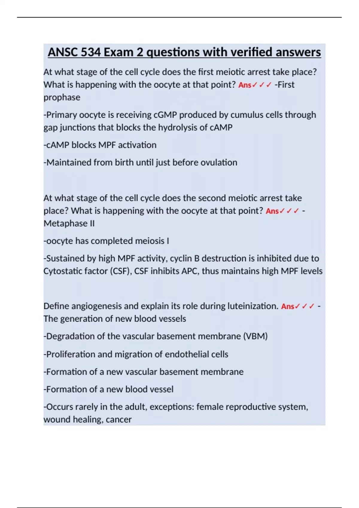 ANSC 534 Exam 2 questions with verified answers