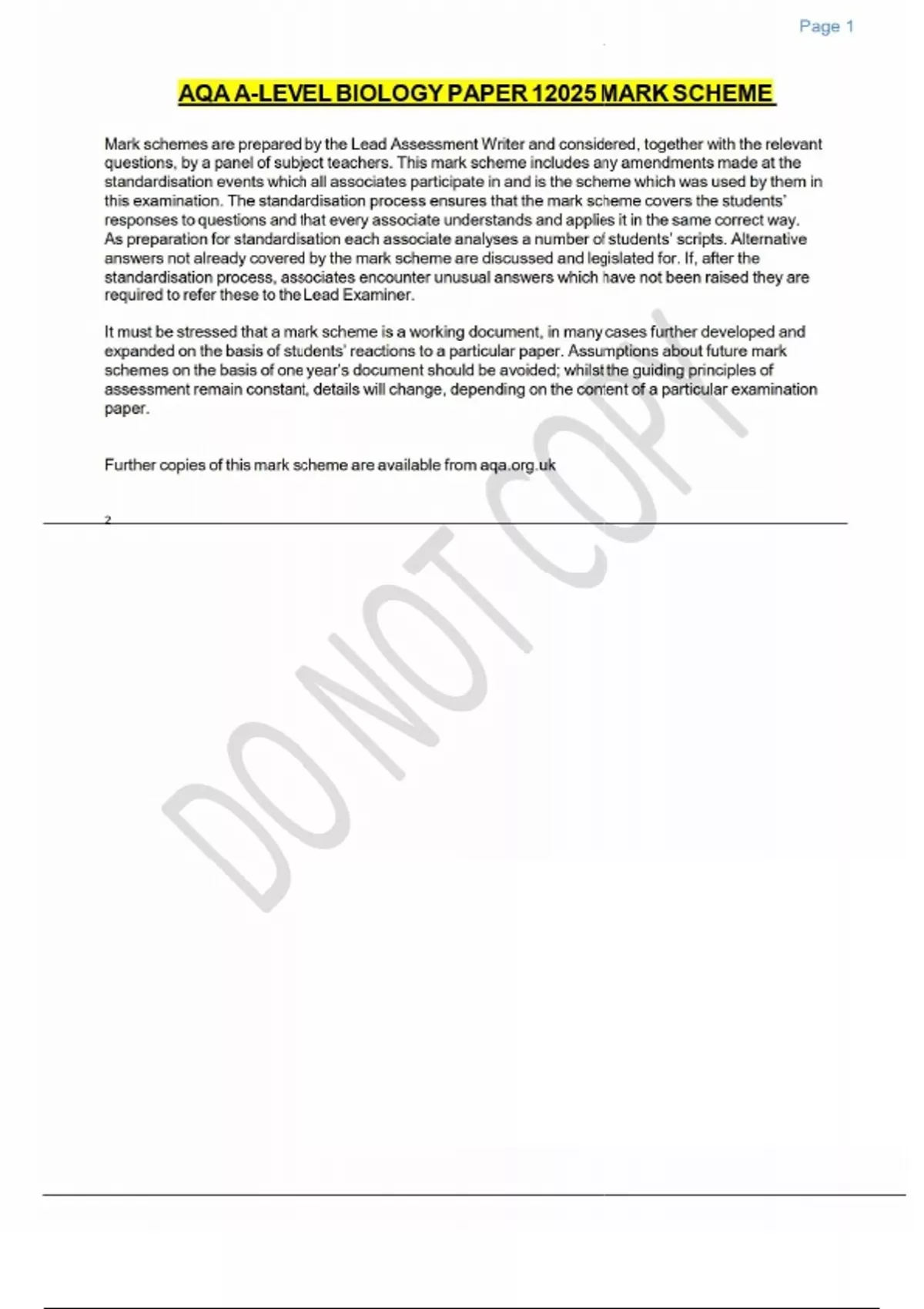 AQA A-LEVEL BIOLOGY PAPER 1 2025 MARK SCHEME