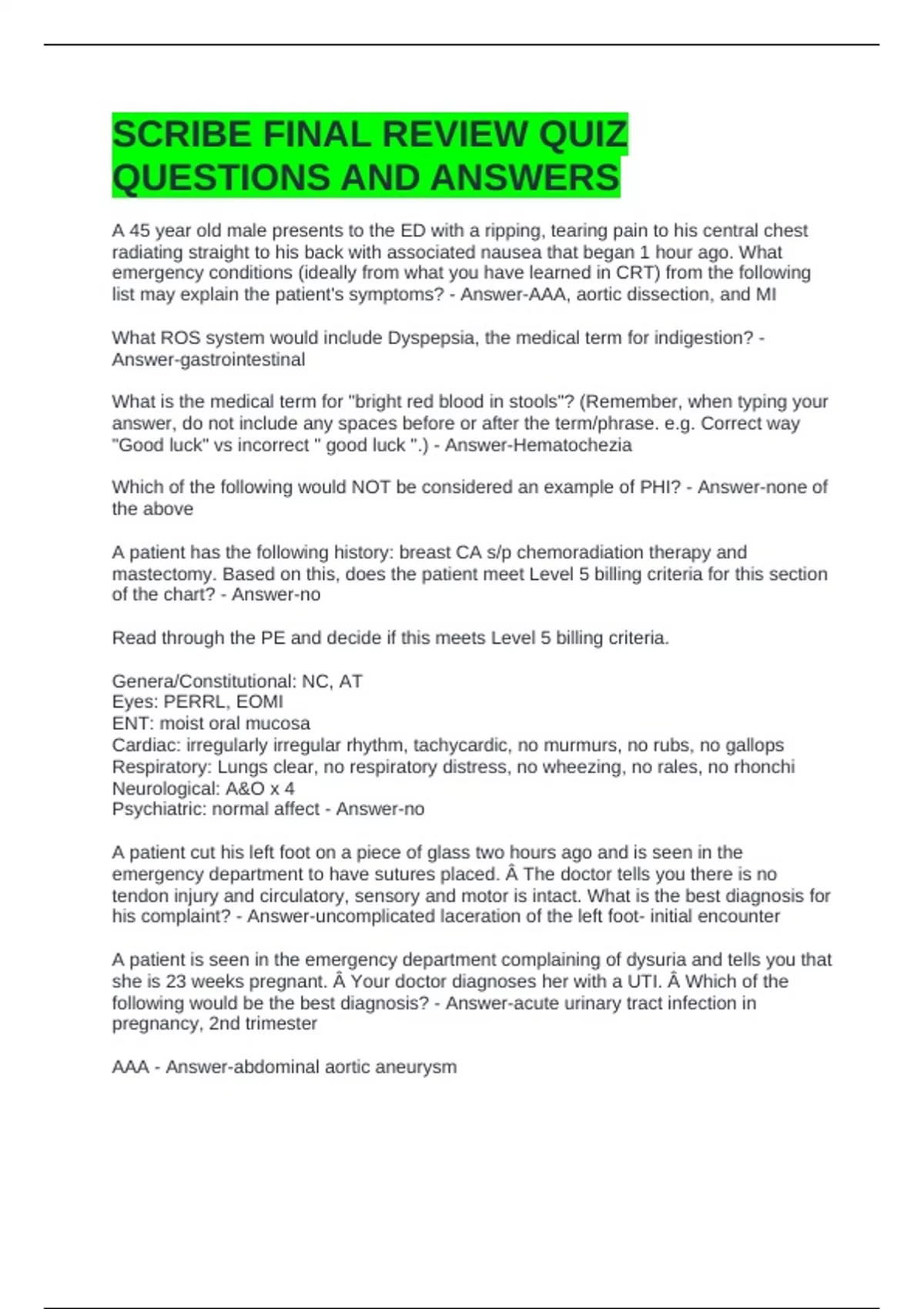 SCRIBE FINAL REVIEW QUIZ QUESTIONS AND ANSWERS