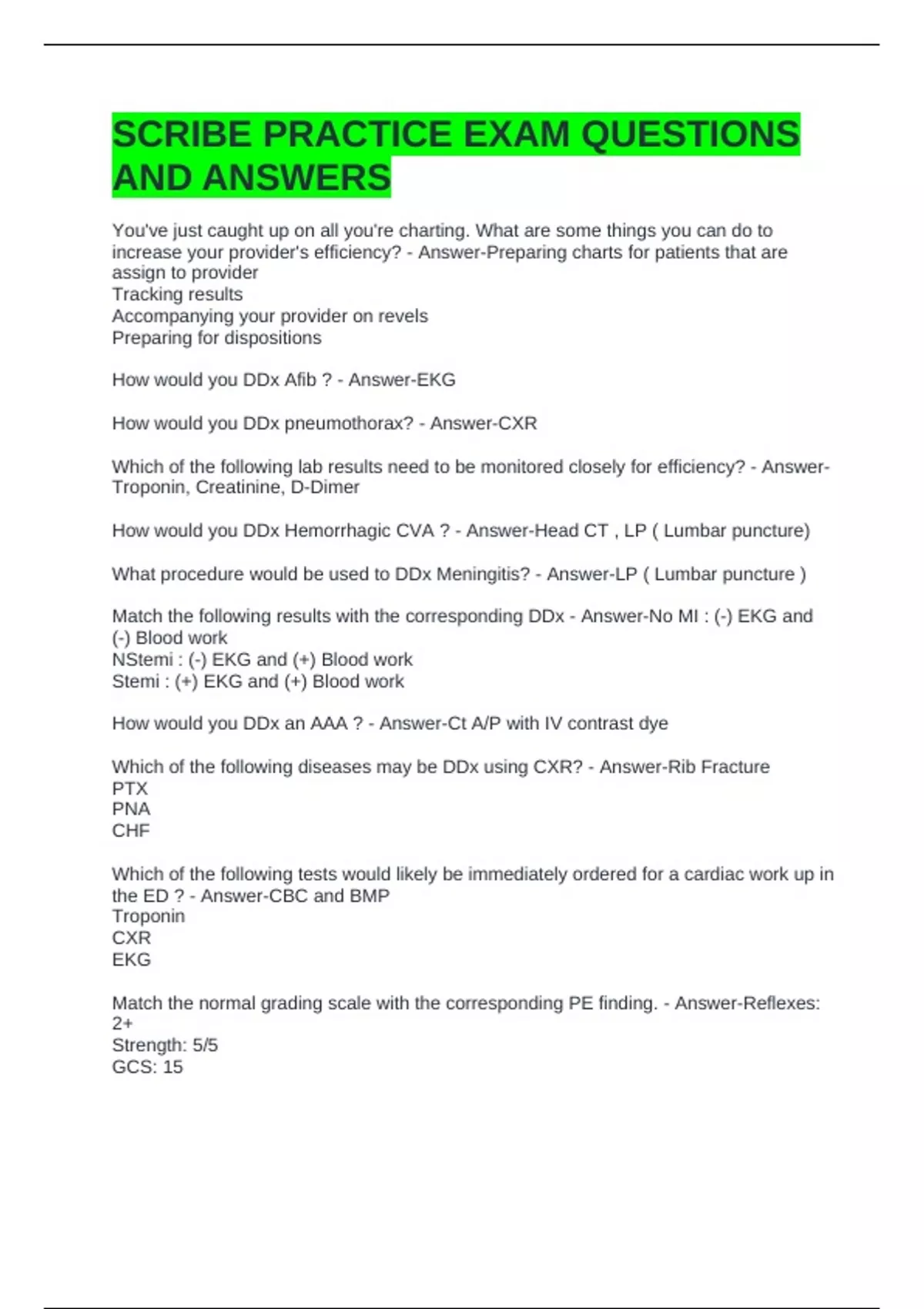 SCRIBE PRACTICE EXAM QUESTIONS AND ANSWERS