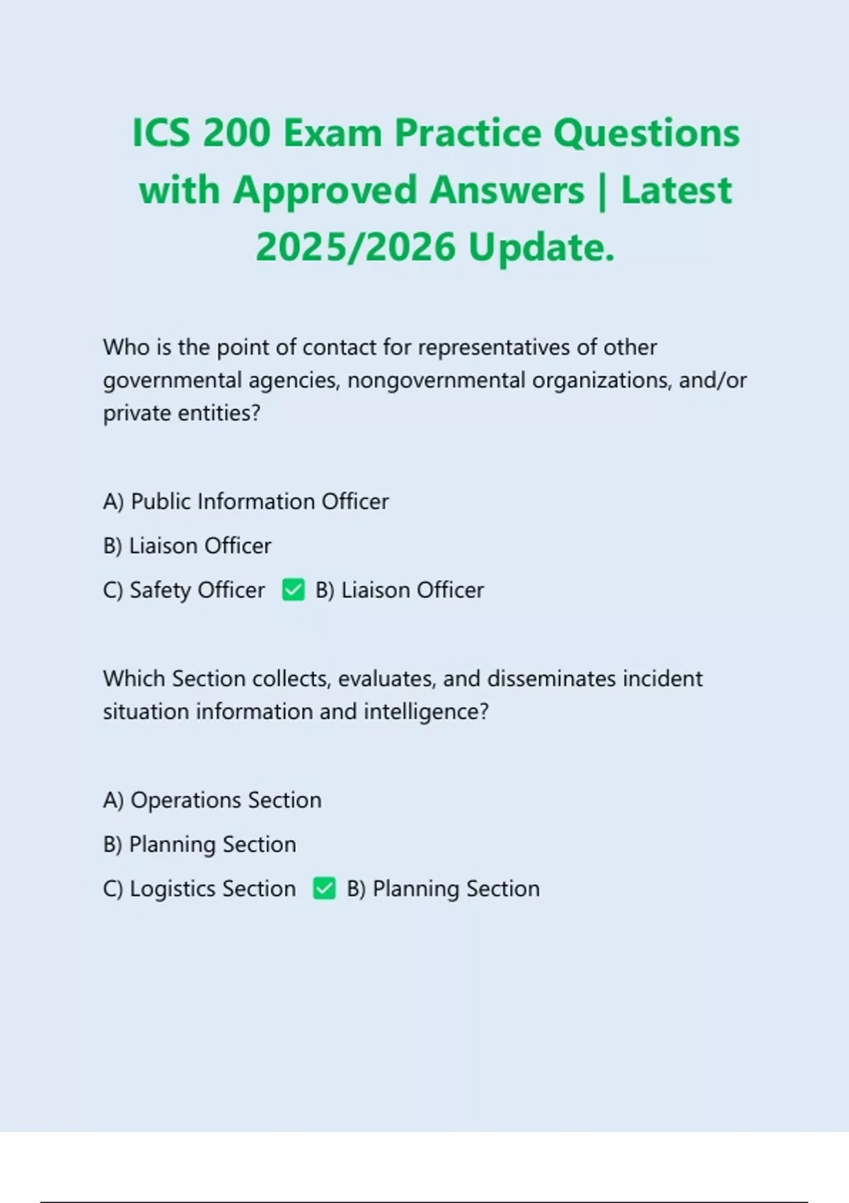 C) Safety Officer B) Liaison Officer
