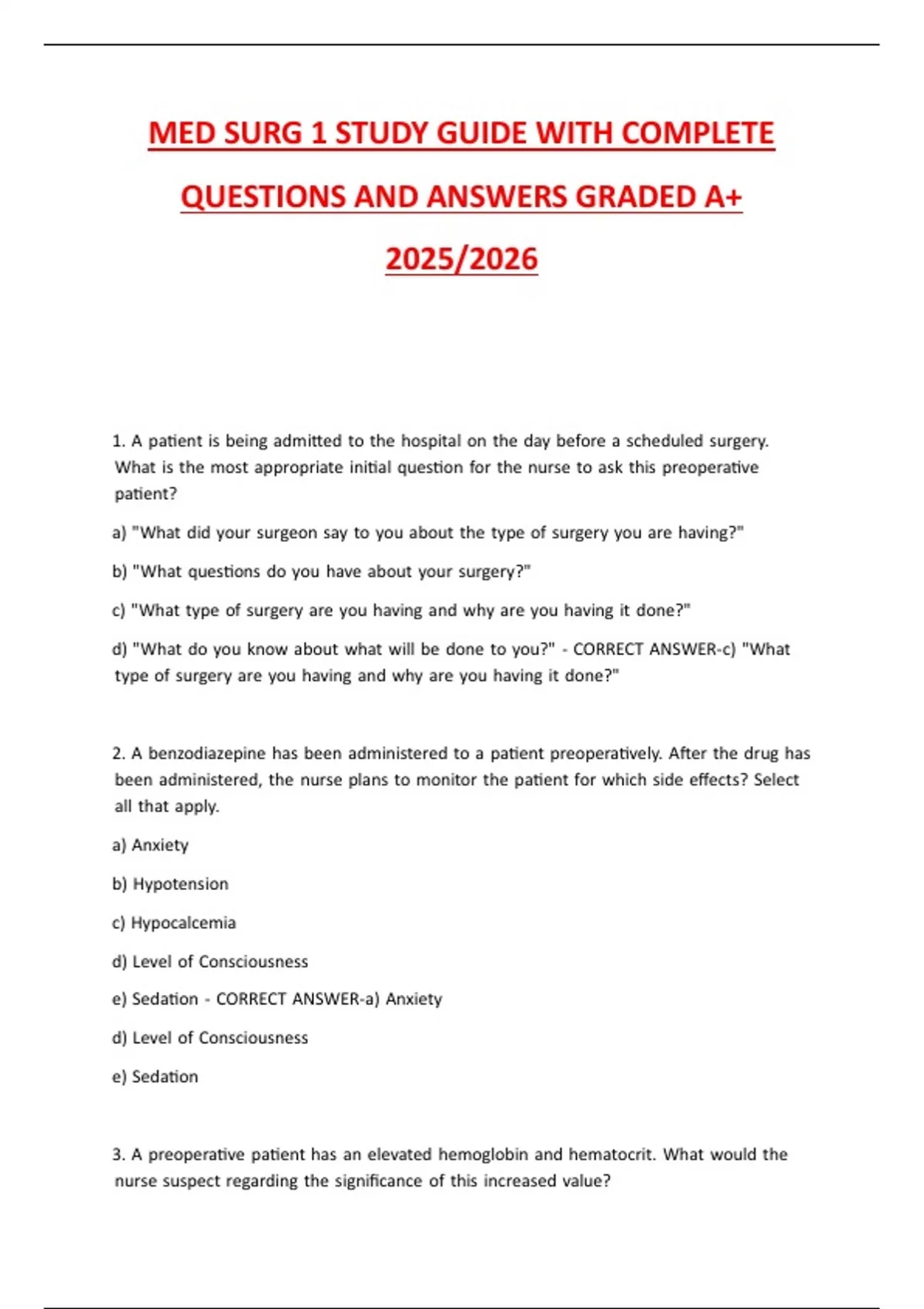MED SURG 1 STUDY GUIDE WITH COMPLETE QUESTIONS AND ANSWERS GRADED A+ 2025/2026 MED SURG 1 STUDY GUIDE WITH COMPLETE QUESTIONS AND ANSWERS GRADED A+ 2025/2026 MED SURG 1 STUDY GUIDE WITH COMPLETE QUESTIONS AND ANSWERS GRADED A+ 2025/2026 MED SURG 1 STUDY GUIDE WITH COMPLETE QUESTIONS AND ANSWERS GRADED A+ 2025/2026 MED SURG 1 STUDY GUIDE WITH COMPLETE QUESTIONS AND ANSWERS GRADED A+ 2025/2026