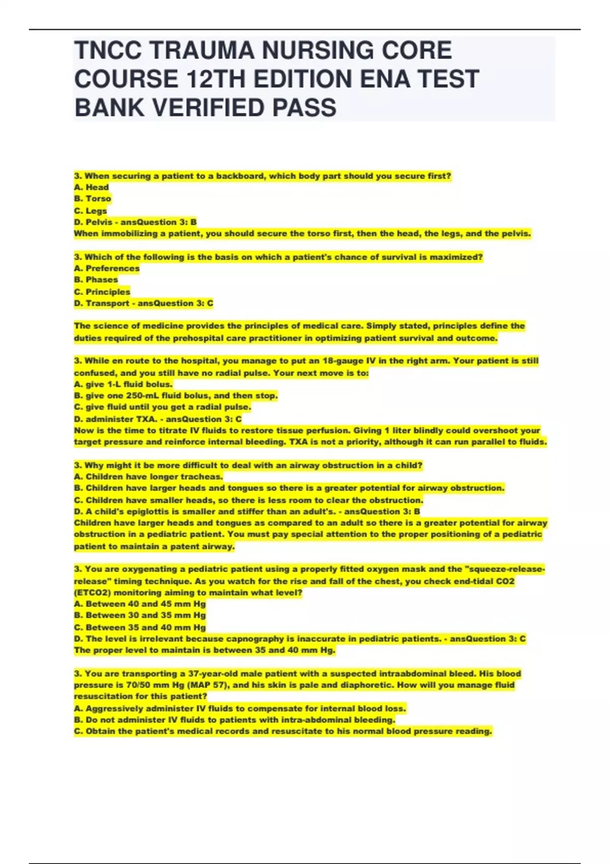 target pressure and reinforce internal bleeding. TXA is not a priority, although it can run parallel to fluids.