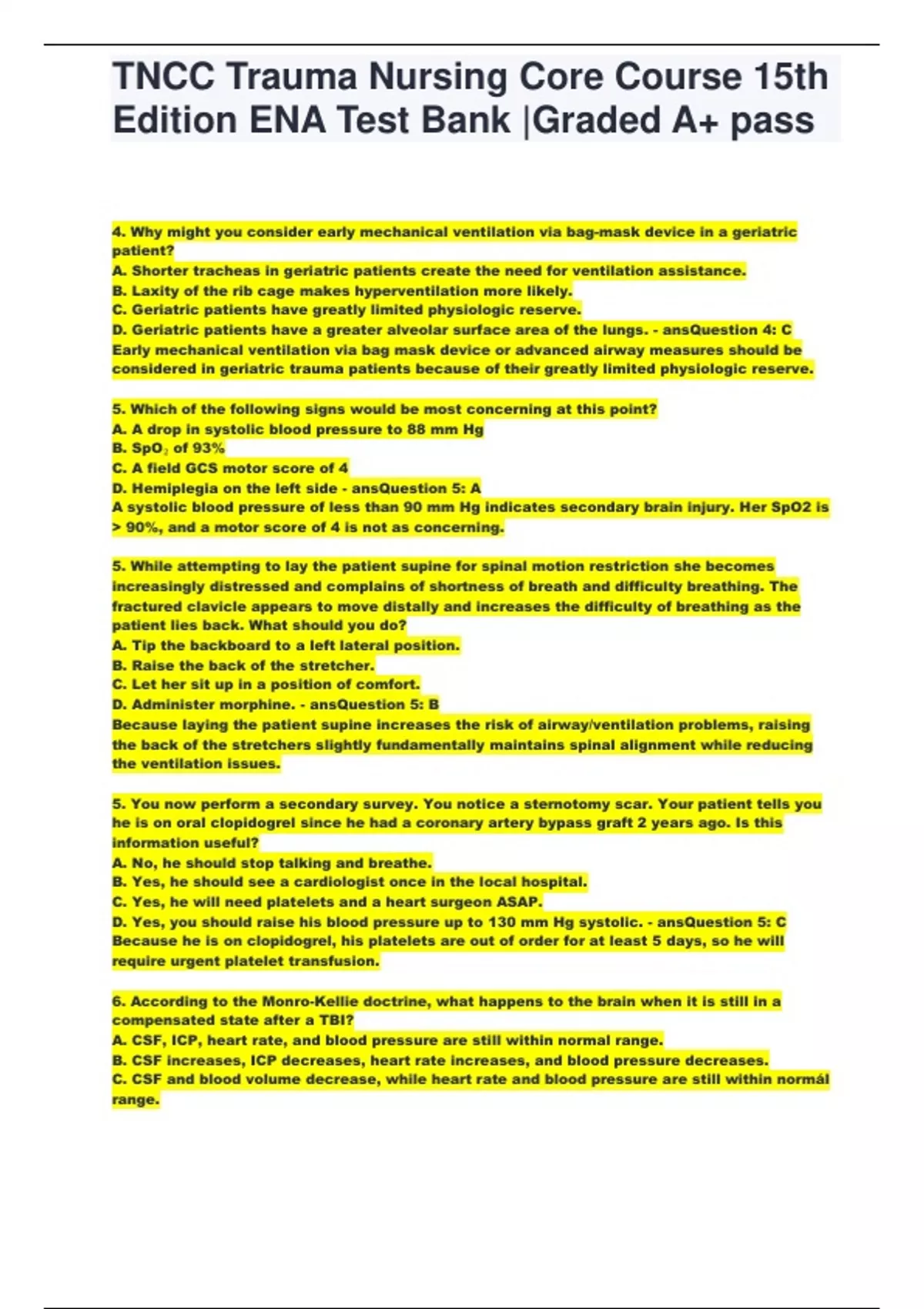 TNCC Trauma Nursing Core Course 15th Edition ENA Test Bank Graded A+ pass correct .pdf