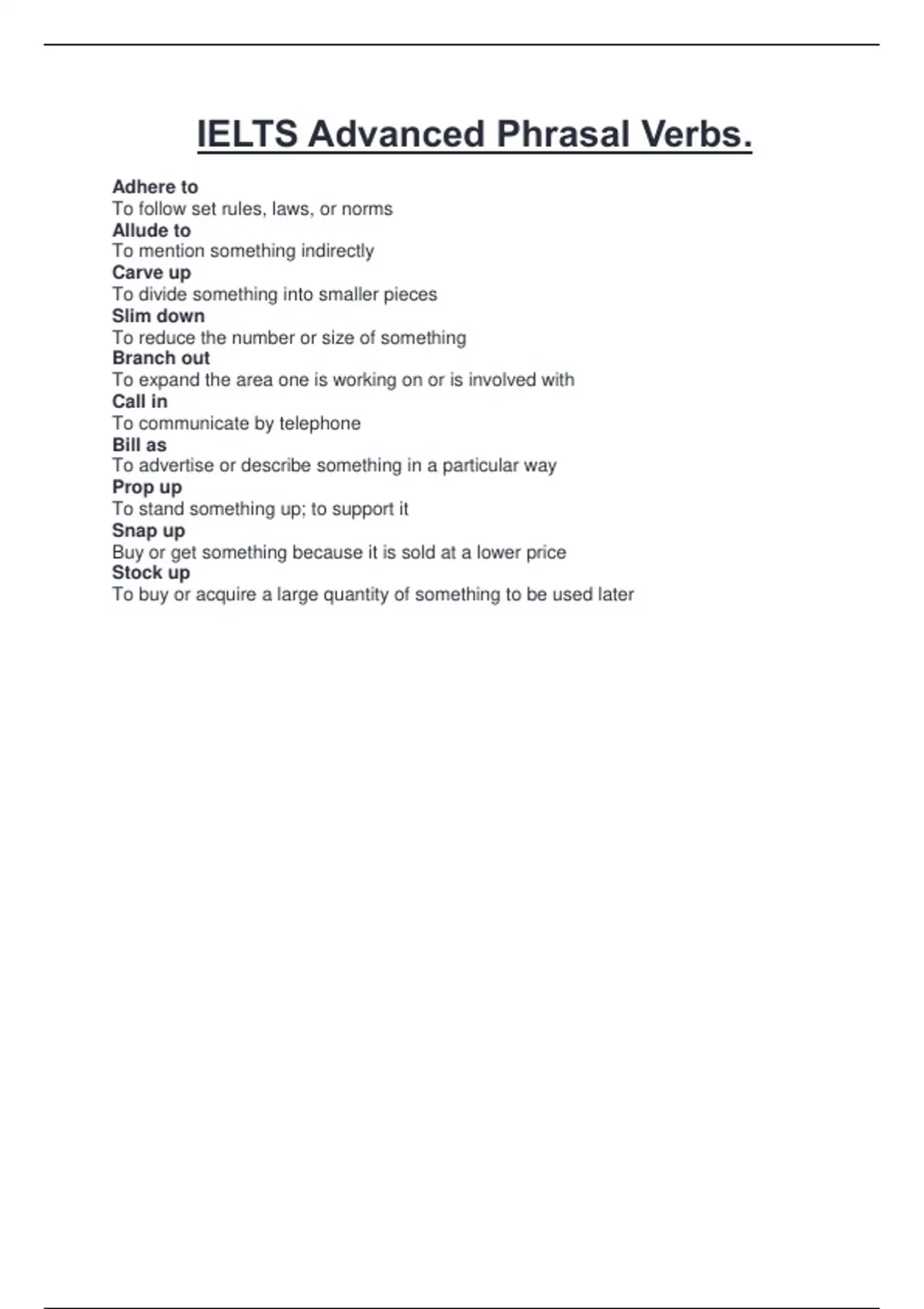 IELTS Advanced Phrasal Verbs.