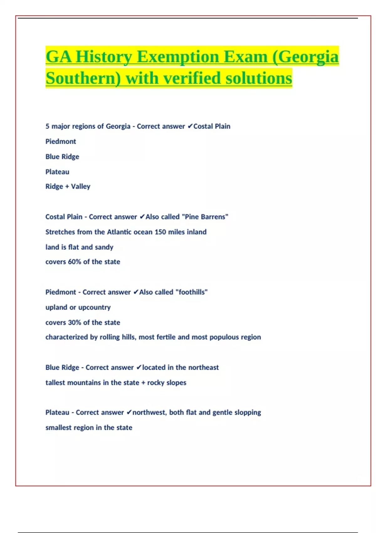 GA History Exemption Exam (Georgia Southern) with verified solutions