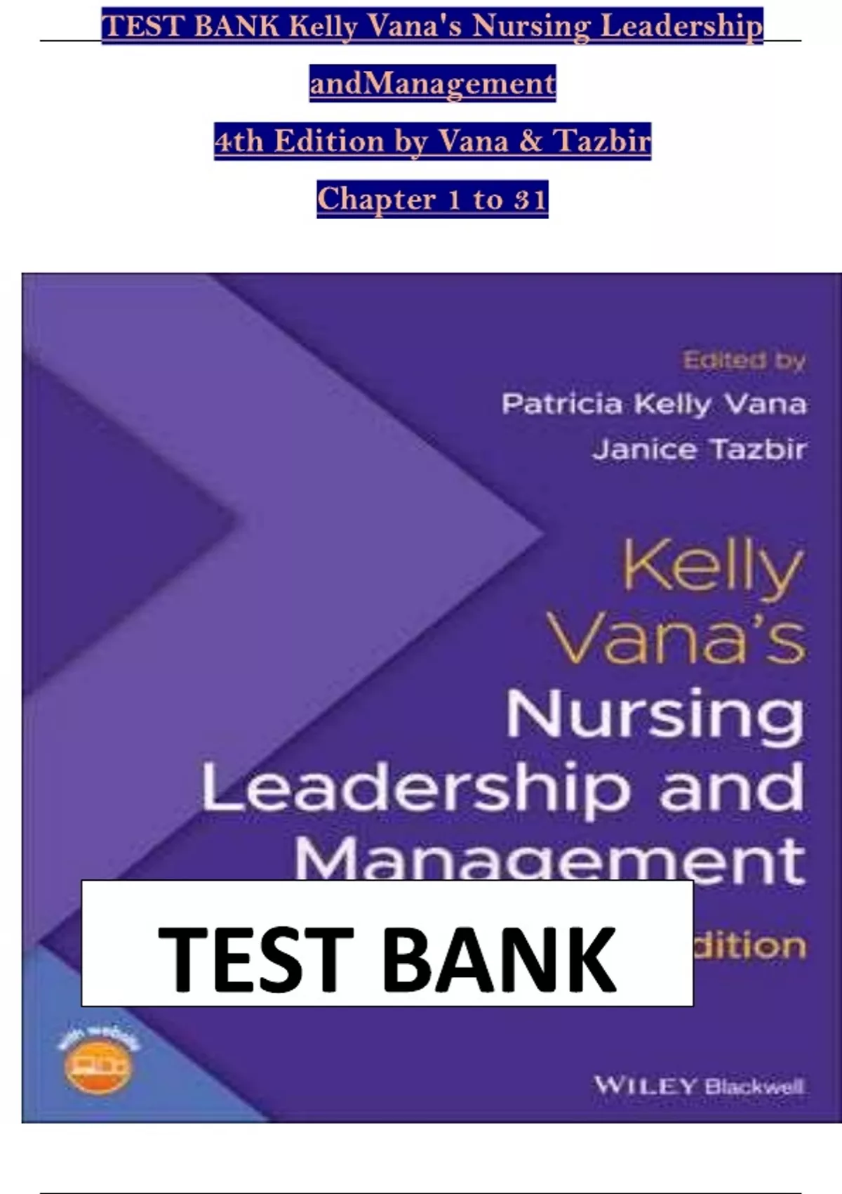 TEST BANK For Kelly Vana's Nursing Leadership and Management 4th Edition by Patricia Kelly Vana , Janice Tazbir chapter 1-31