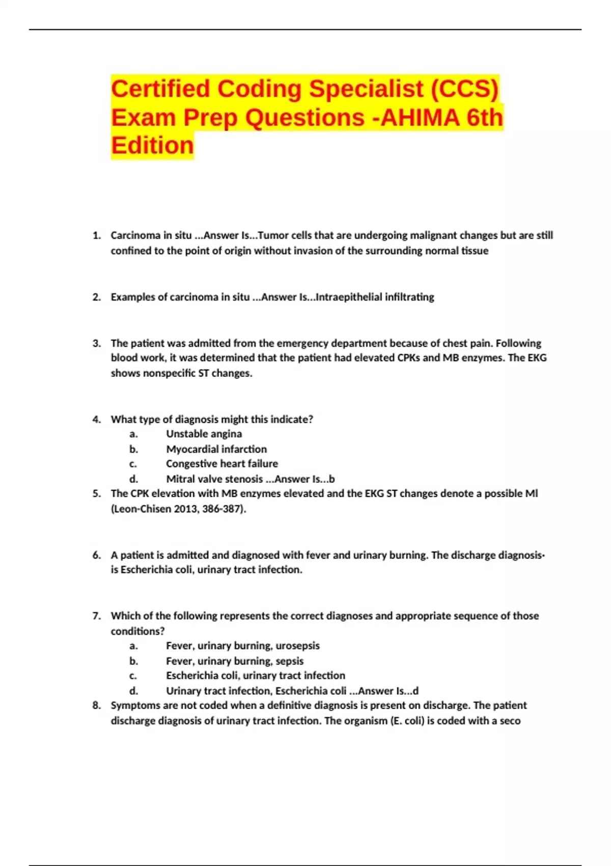 Certified Coding Specialist (CCS) Exam Prep Questions -AHIMA 6th Edition