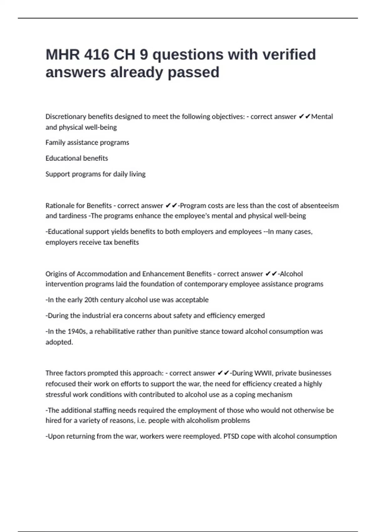 Discretionary benefits designed to meet the following objectives: - correct answer ✔✔Mental