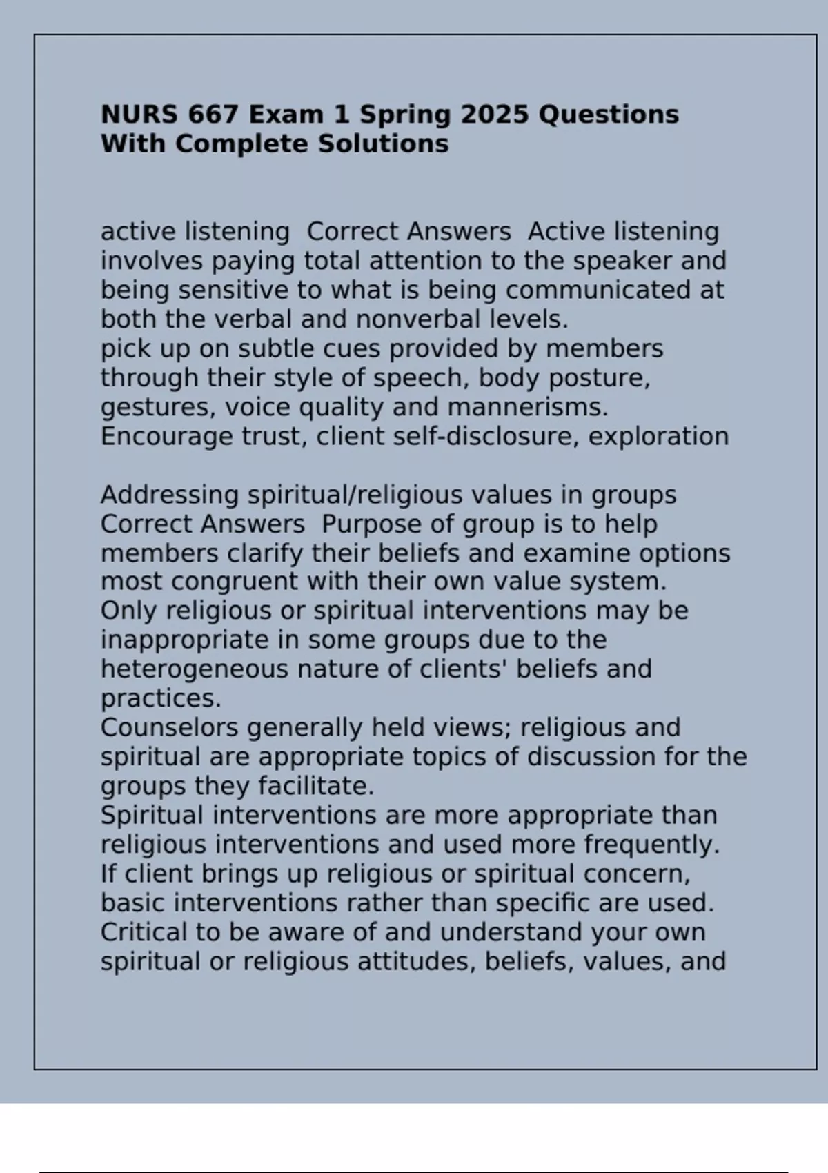 active listening Correct Answers Active listening
