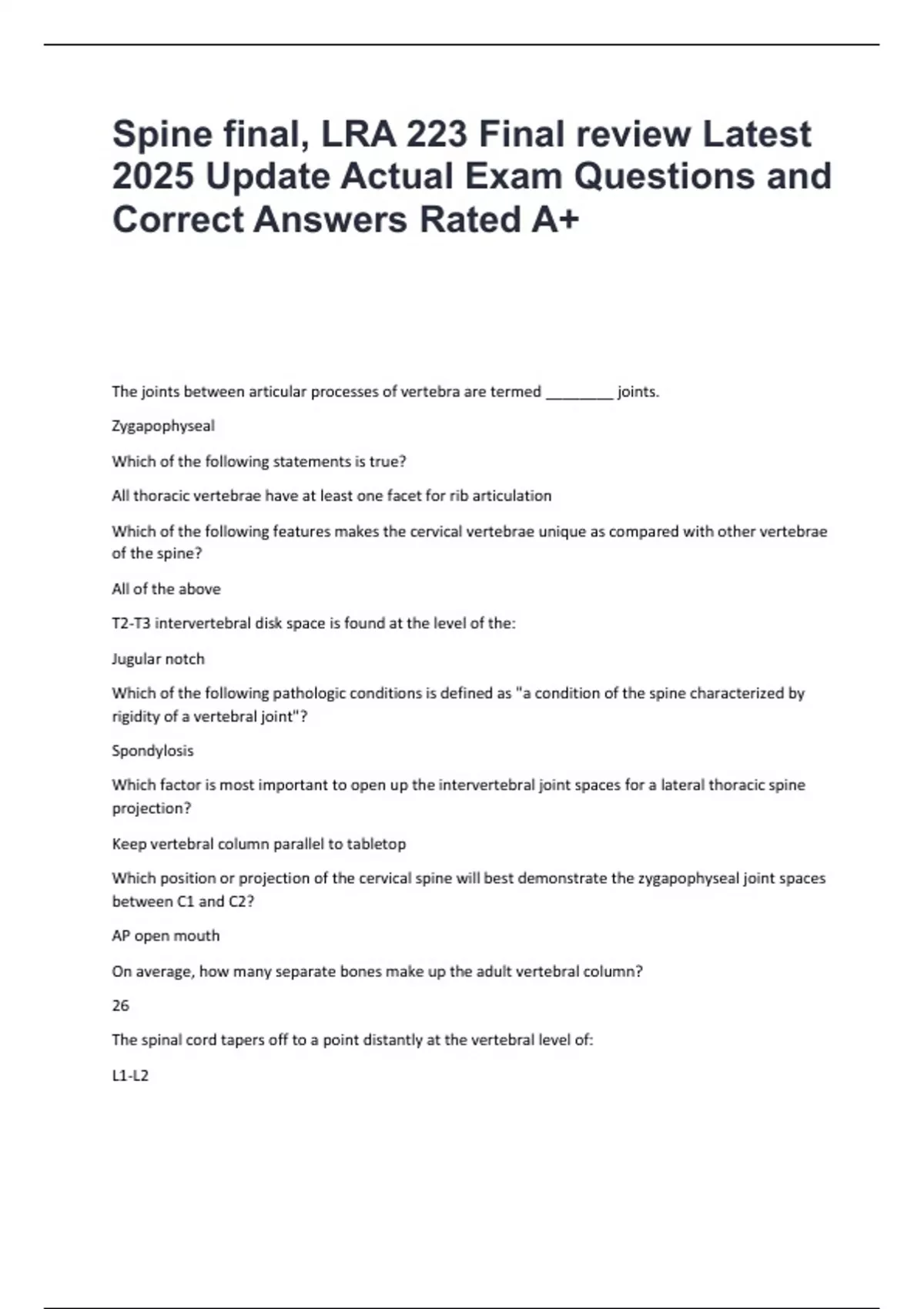 Spine final, LRA 223 Final Questions & 100% Verified Correct Answers with complete solutions [Latest update 2025/2026]