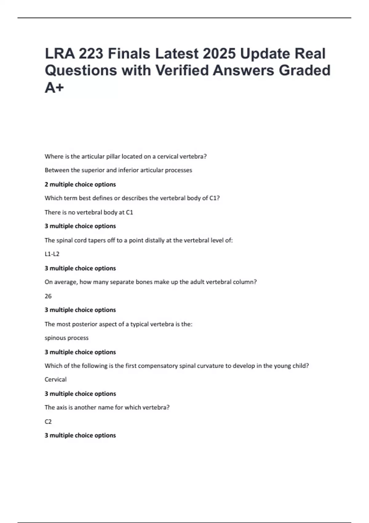 LRA 223 Finals Latest 2025 Update Real Questions with Verified Answers Graded A.