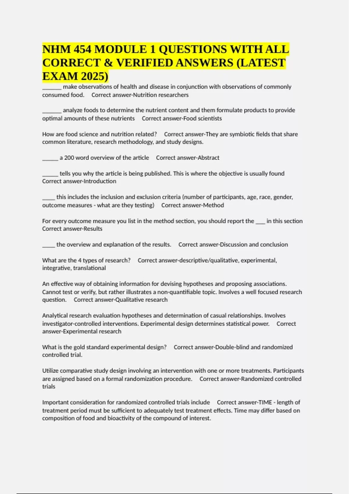 Correct answer-Results