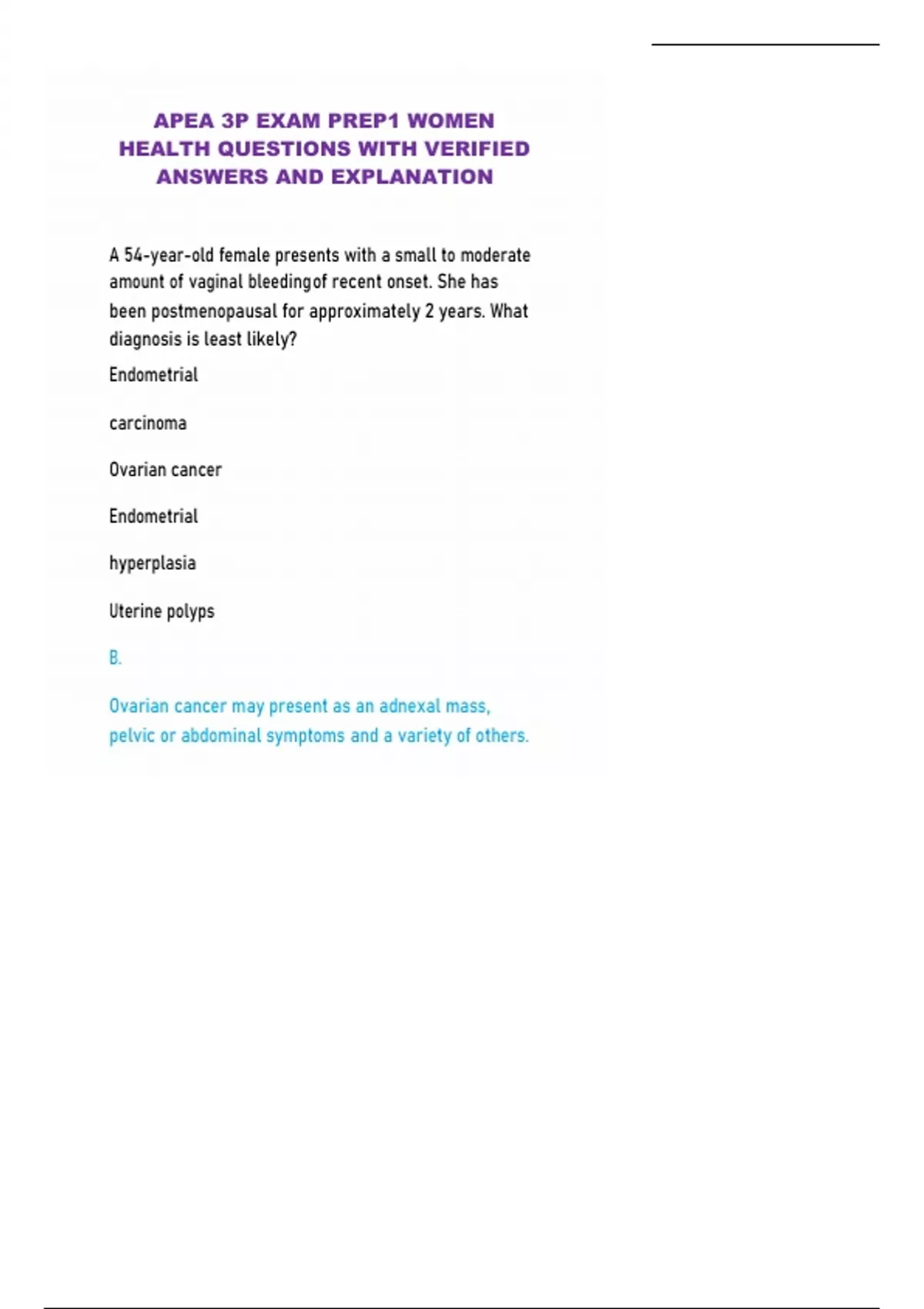 , 3/12/24, 4:59 PM APEA 3P EXAM PREP1 Women Health Questions WITH Verified Answers …
