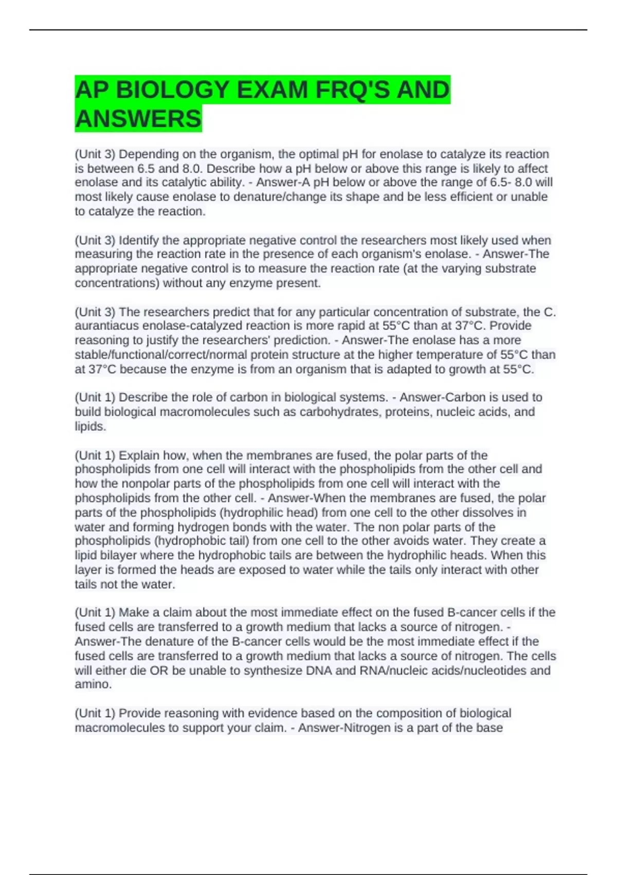 AP BIOLOGY EXAM FRQ'S AND