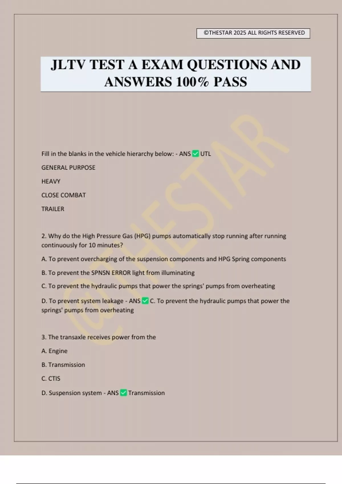 JLTV TEST A EXAM QUESTIONS AND