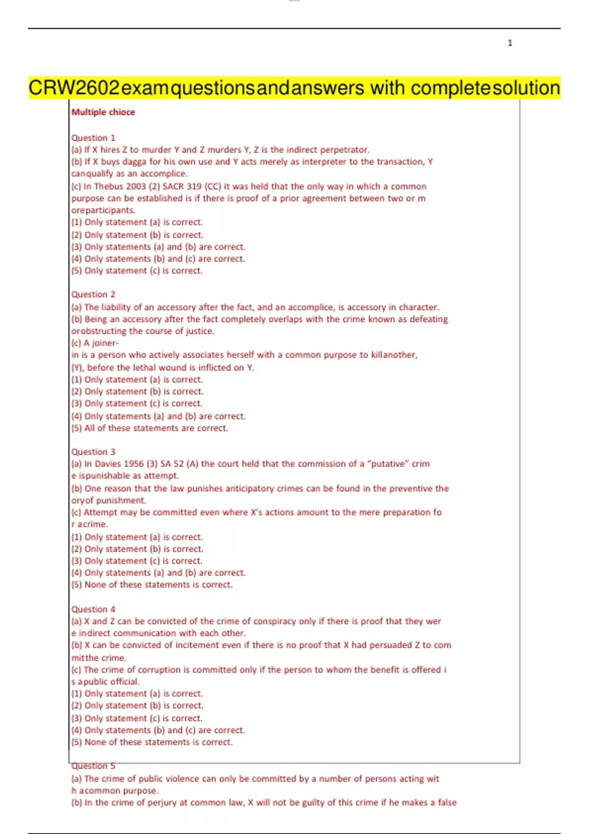 CRW2602 exam questions and answers with complete solution