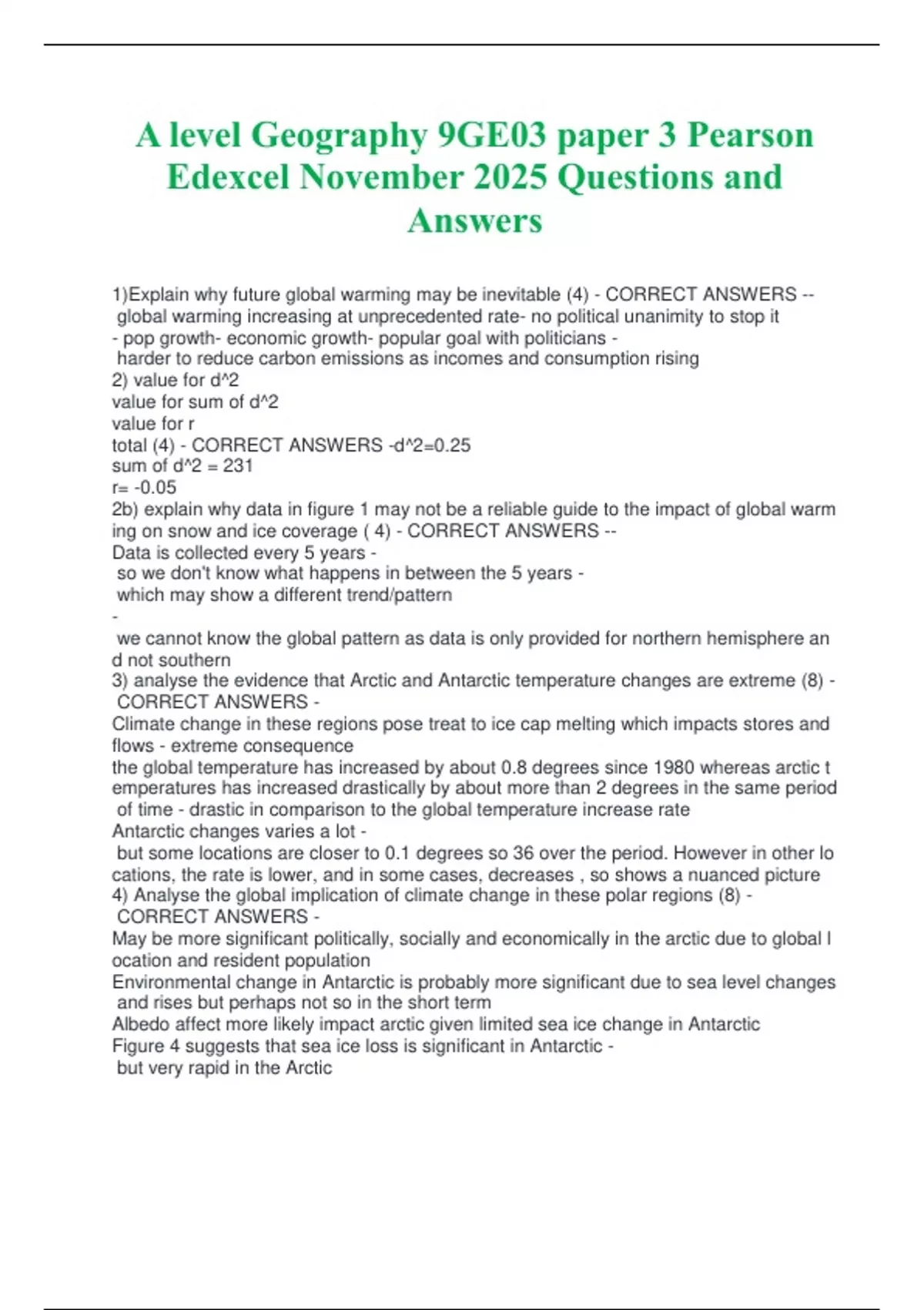 1)ExplainAwhyAfutureAglobalAwarmingAmayAbeAinevitableA(4)A-ACORRECTAANSWERSA--