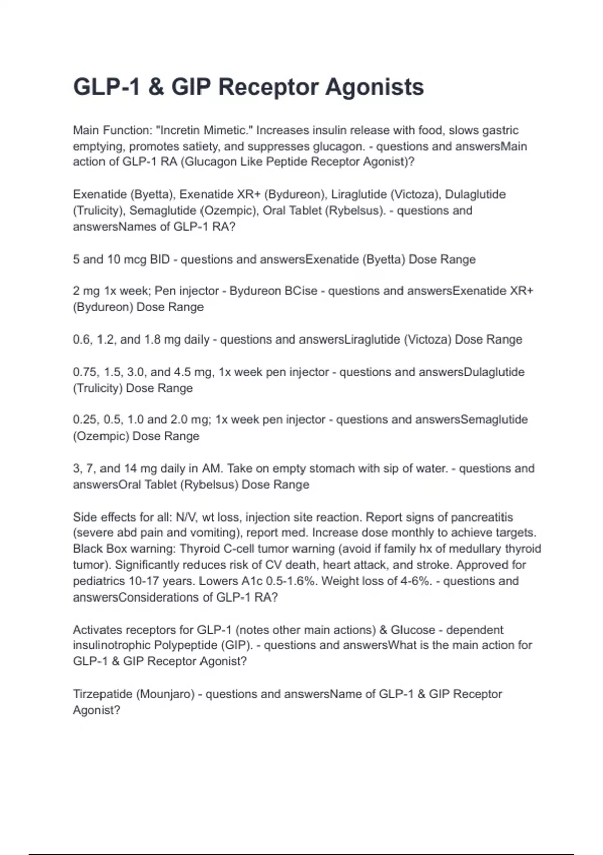 answersNames of GLP-1 RA?