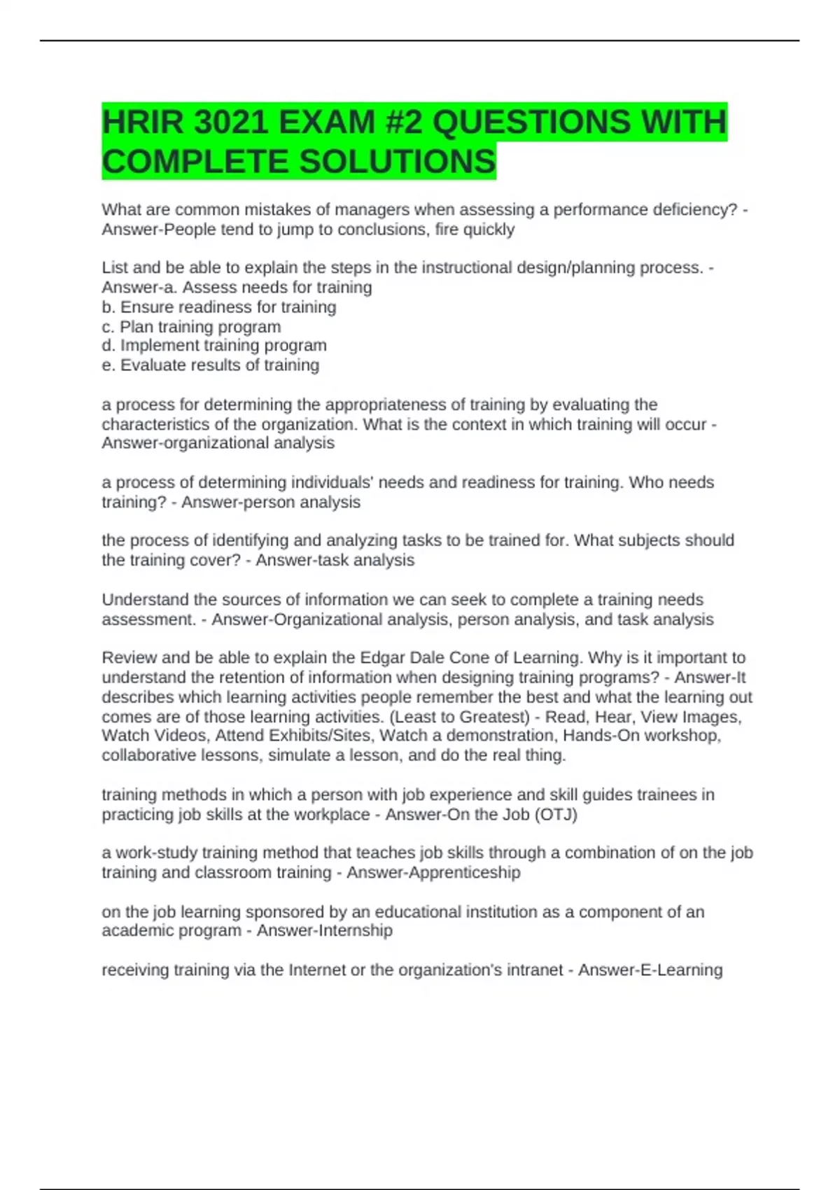 HRIR 3021 EXAM #2 QUESTIONS WITH