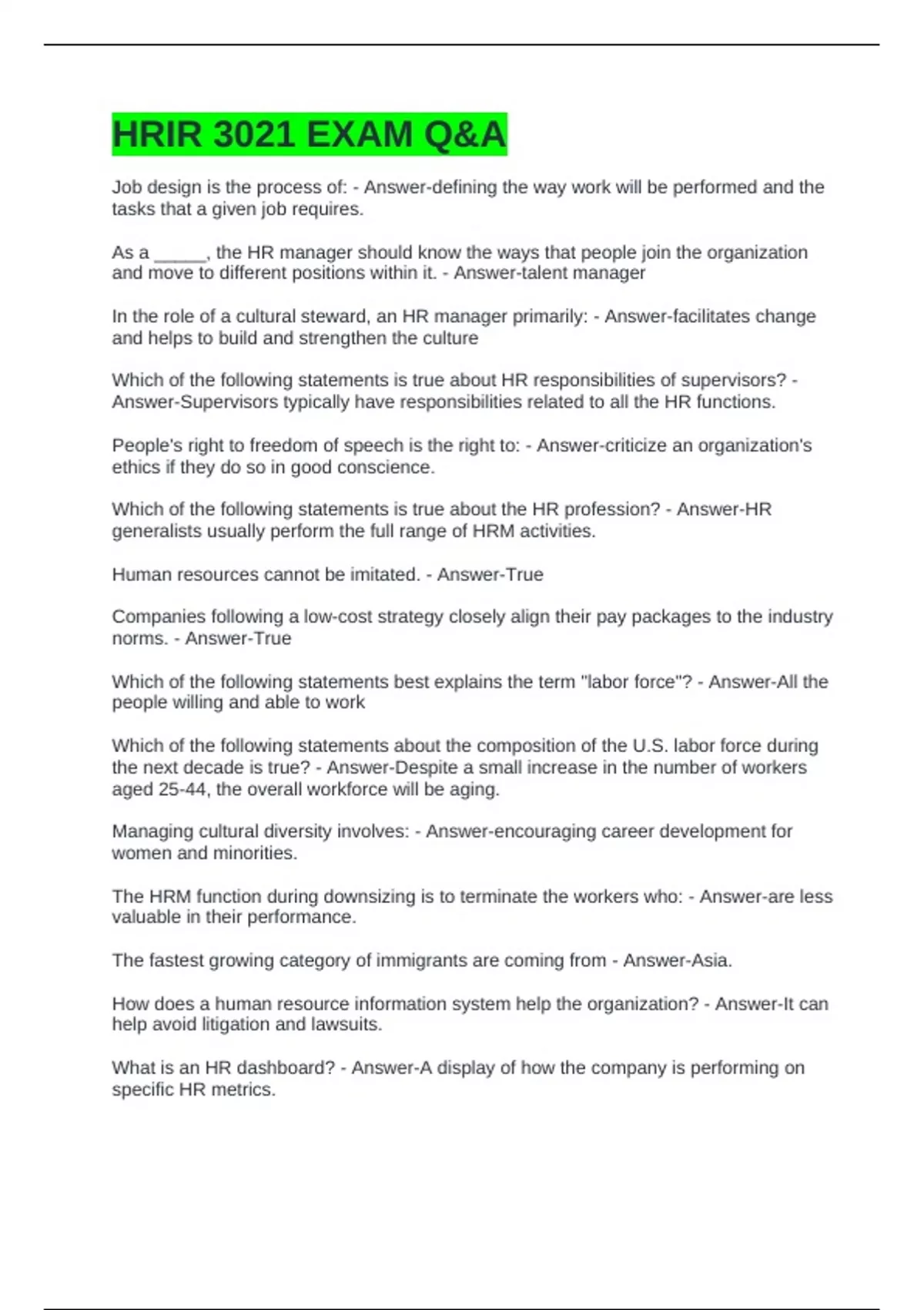 HRIR 3021 EXAM Q&A