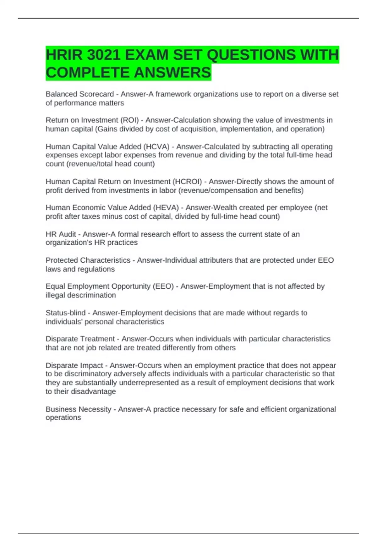 HRIR 3021 EXAM SET QUESTIONS WITH
