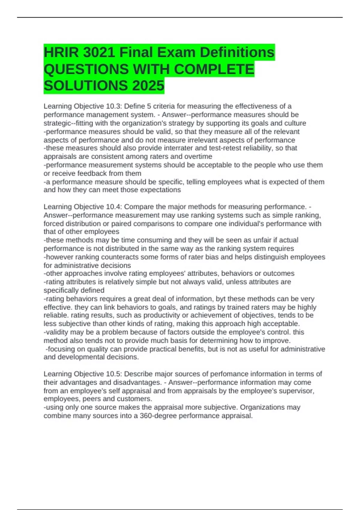 HRIR 3021 FINAL EXAM DEFINITIONS QUESTIONS WITH COMPLETE SOLUTIONS 2025