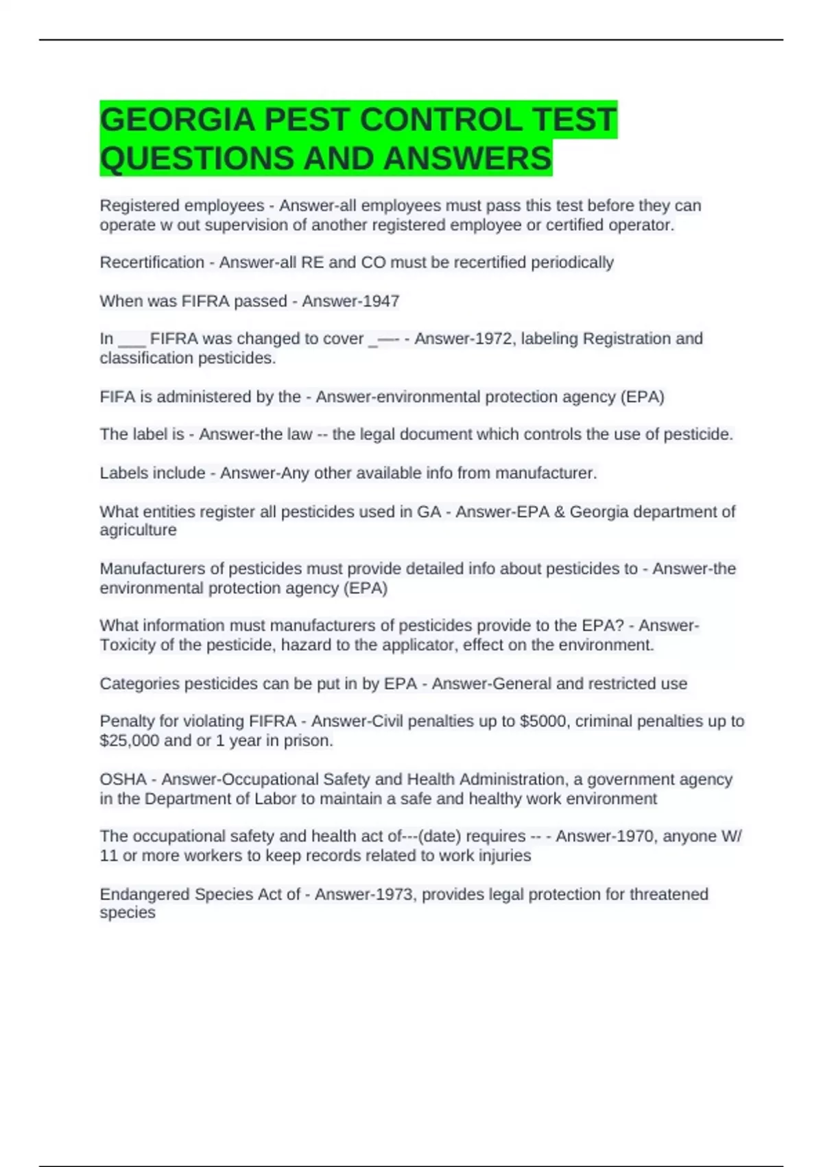 GEORGIA PEST CONTROL TEST
