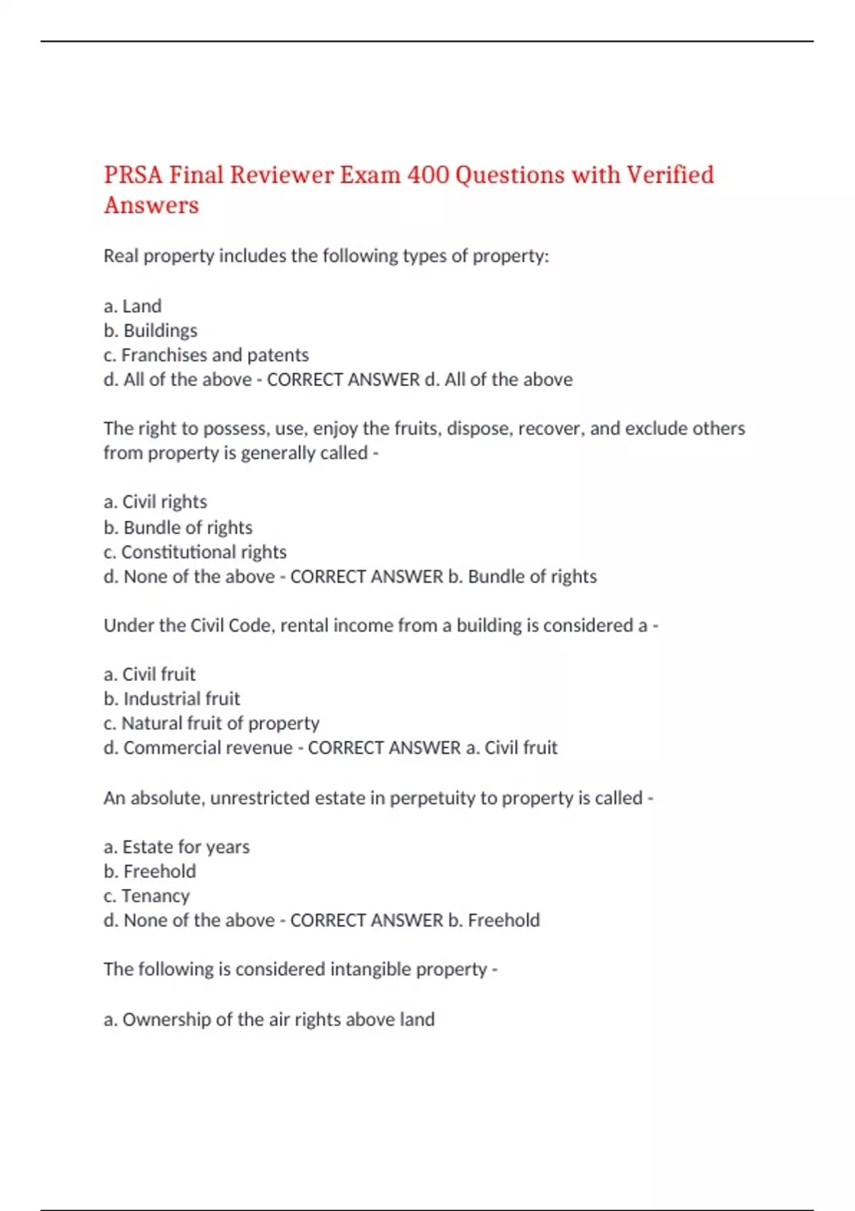 d. None of the above - CORRECT ANSWER b. Bundle of rights