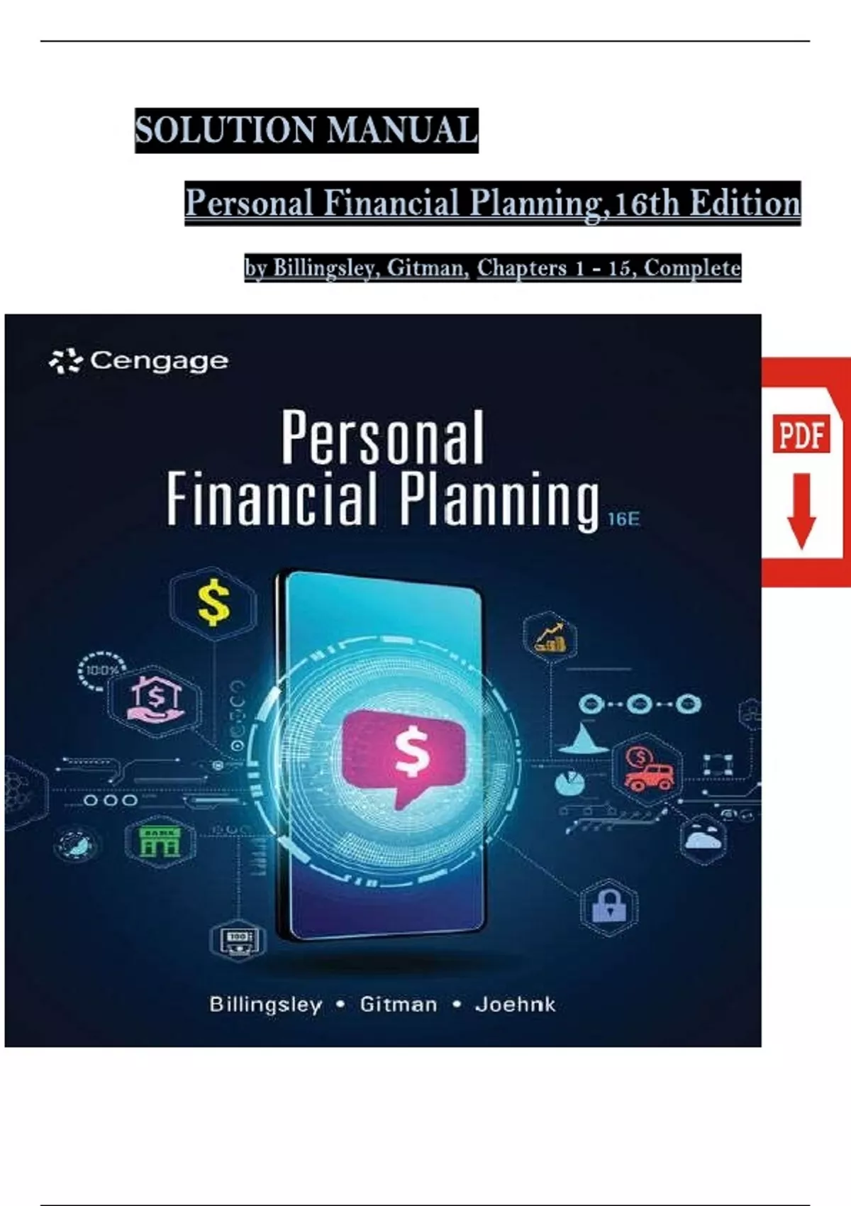 Solution Manual For Personal Financial Planning 16th Edition, Lawrence J Gitman, Michael D Joehnk and Billingsley, Chapters 1- 15 Complete