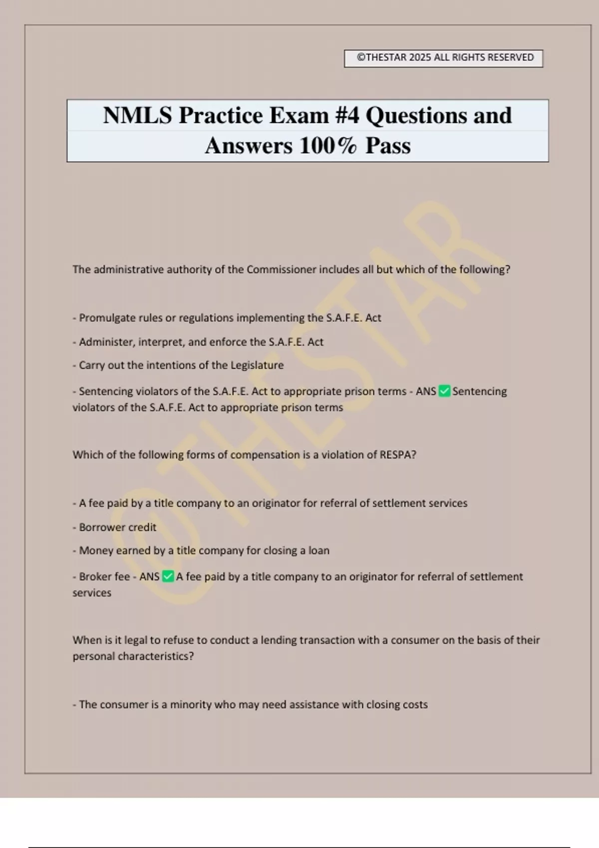 NMLS Practice Exam #4 Questions and