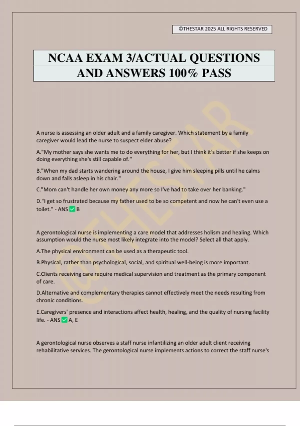 NCAA EXAM 3/ACTUAL QUESTIONS
