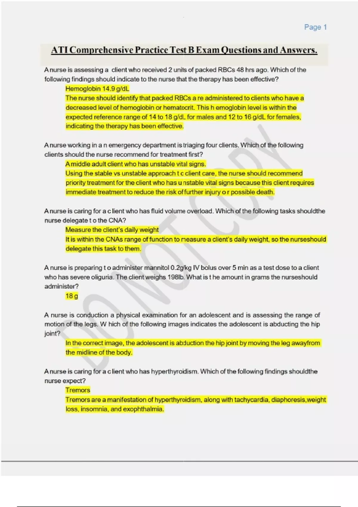 ATI Comprehensive Practice Test B Exam Questions and Answers.