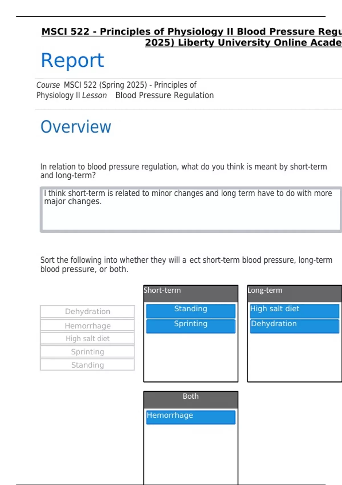 Sort the following into whether they will a ect short-term blood pressure, long-term