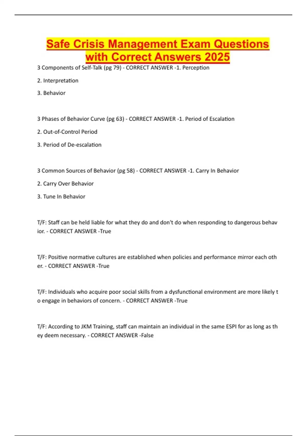 Safe Crisis Management Exam Questions with Correct Answers 2025