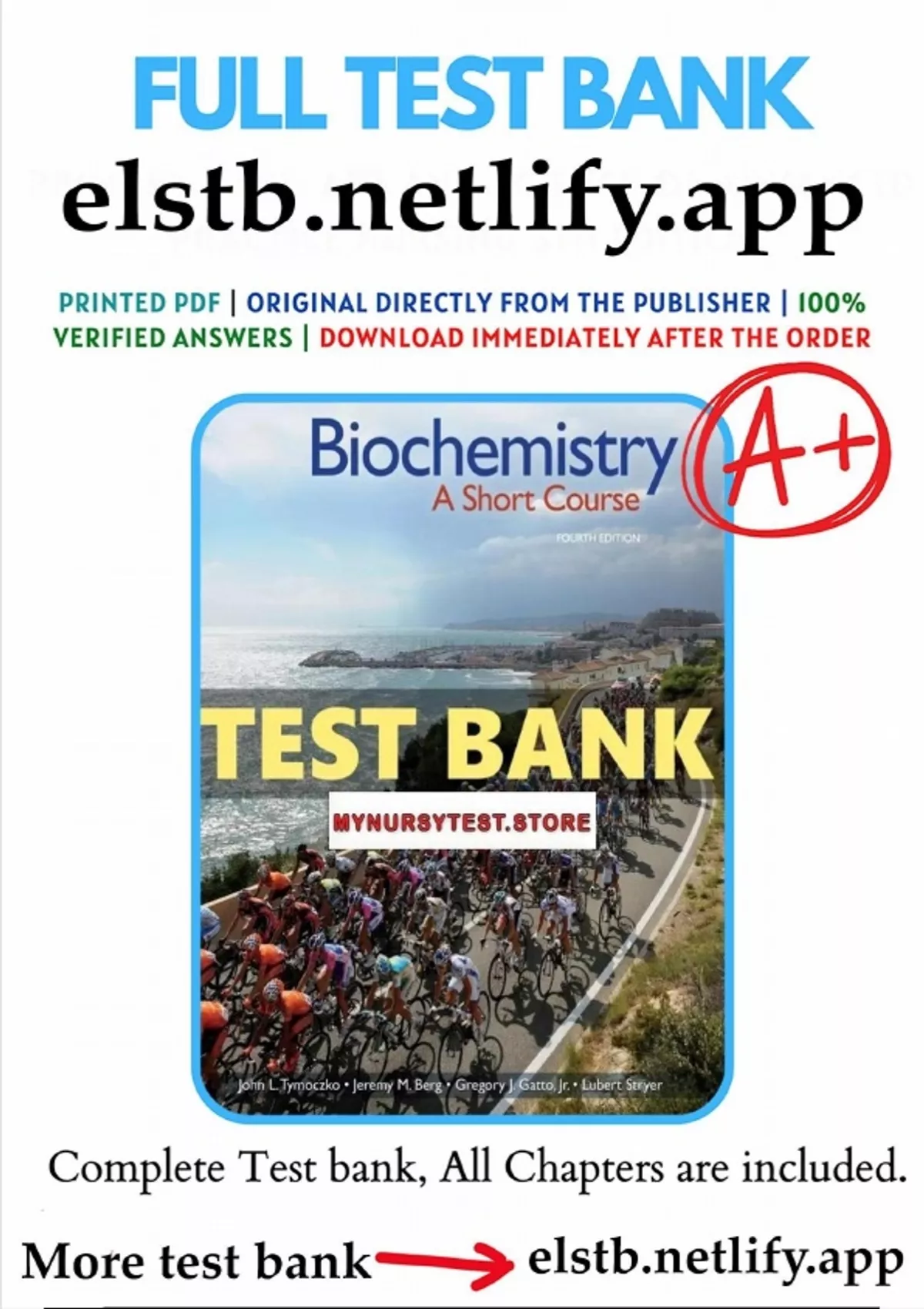 Test Bank - Biochemistry-A Short Course, 4th Edition (Tymoczko, 2019), Chapter 1-41 | All Chapters Test Bank - Biochemistry-A Short Course, 4th Edition (Tymoczko, 2019), Chapter 1-41 | All Chapters