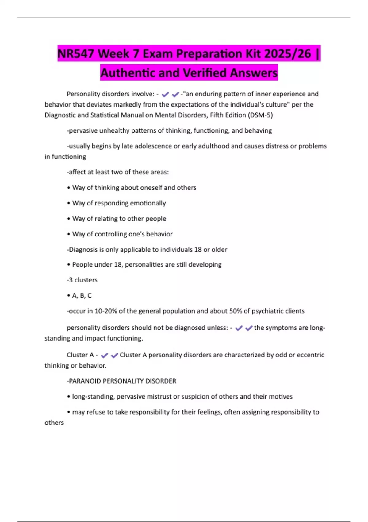 NR547 Week 7 Exam Preparation Kit 2025/26 |