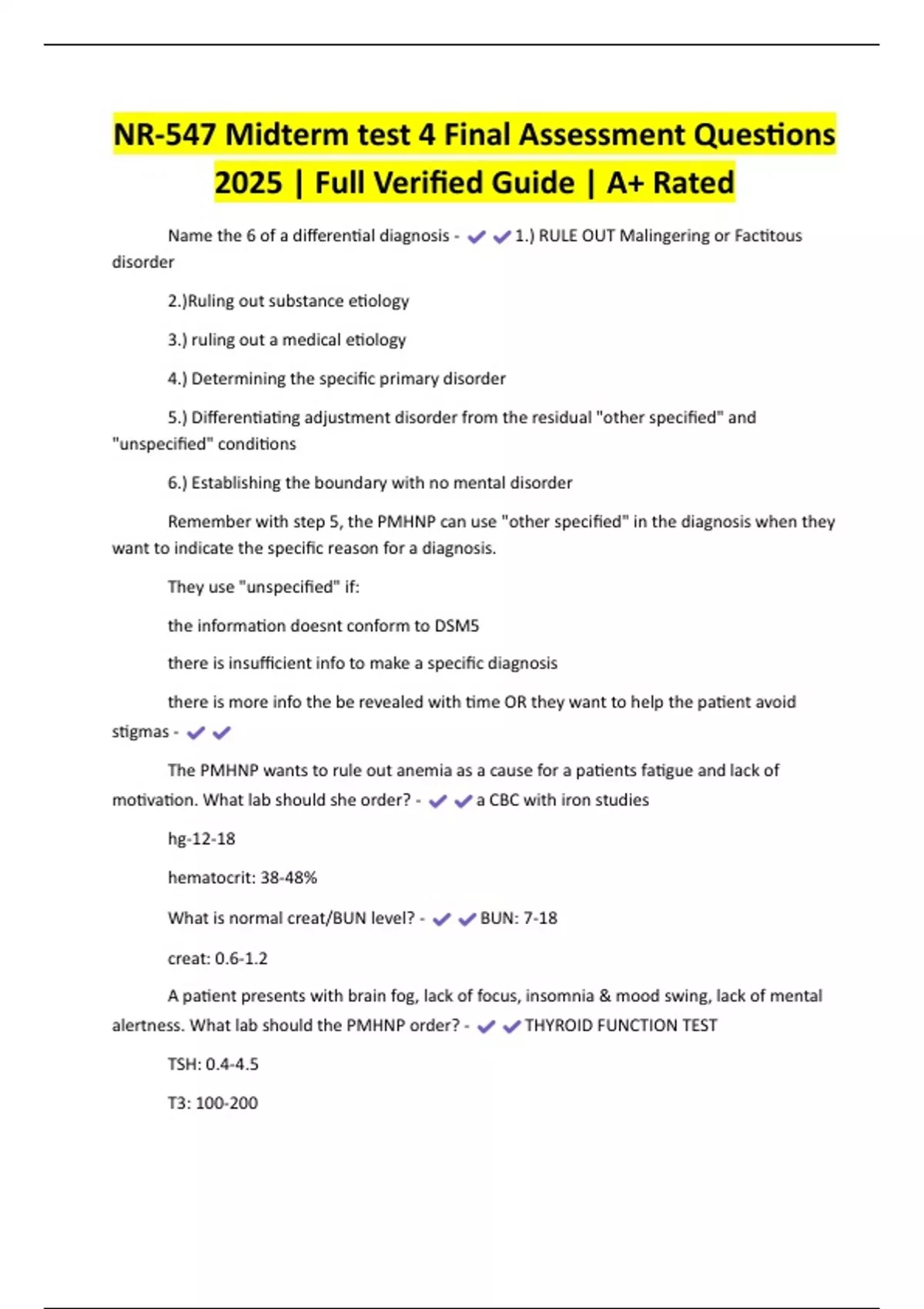 alertness. What lab should the PMHNP order? - THYROID FUNCTION TEST