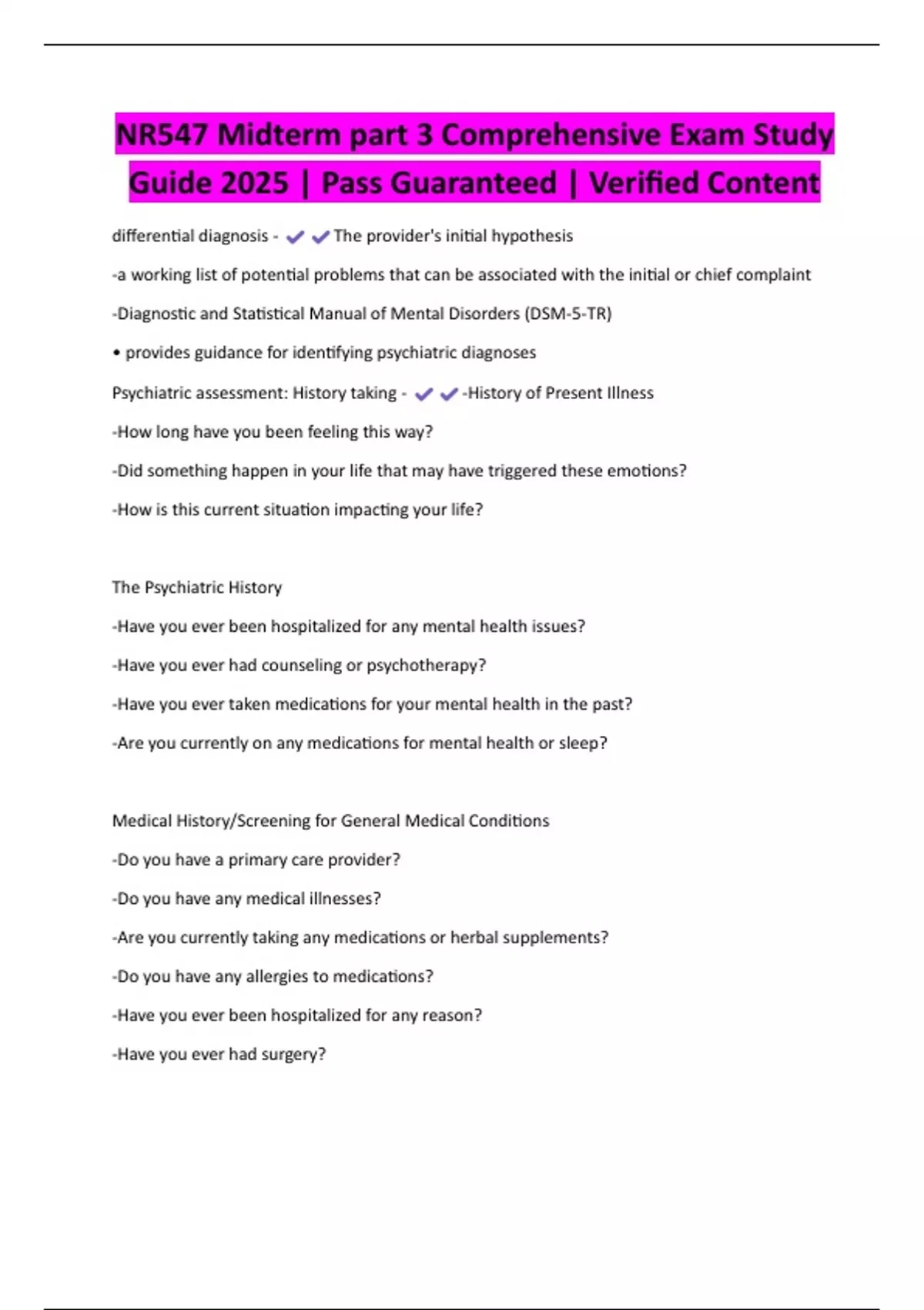 NR547 Midterm part 3 Comprehensive Exam Study Guide 2025 | Pass Guaranteed | Verified Content