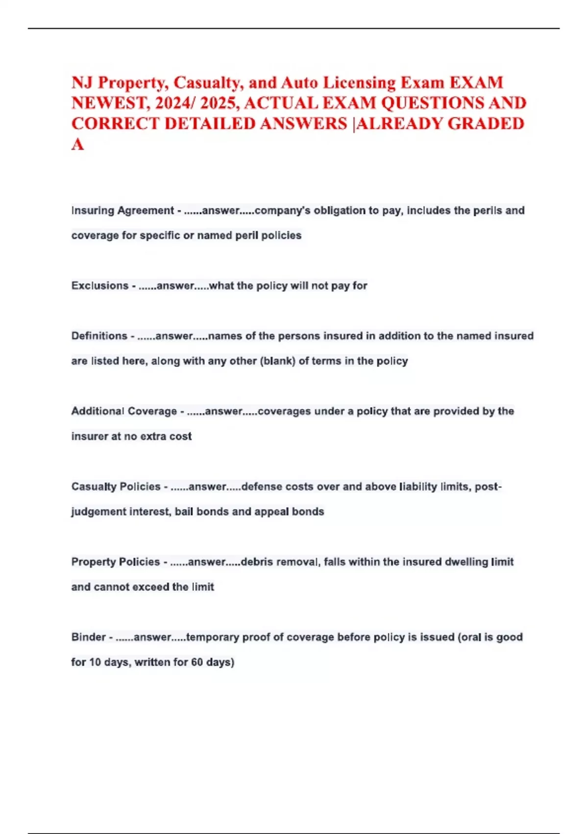 NJ PROPERTY STATE EXAM QUESTIONS AND ANSWERS