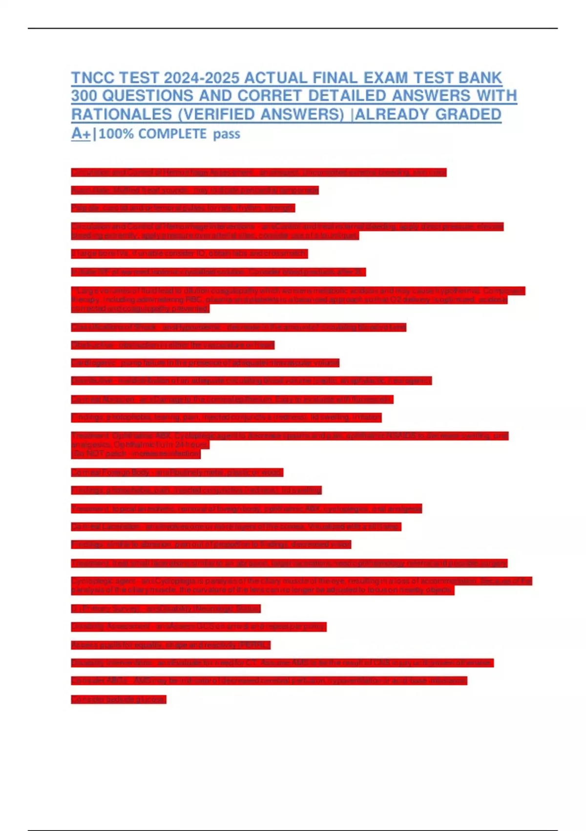 , TNCC TEST 2024-2025 ACTUAL FINAL EXAM TEST BANK