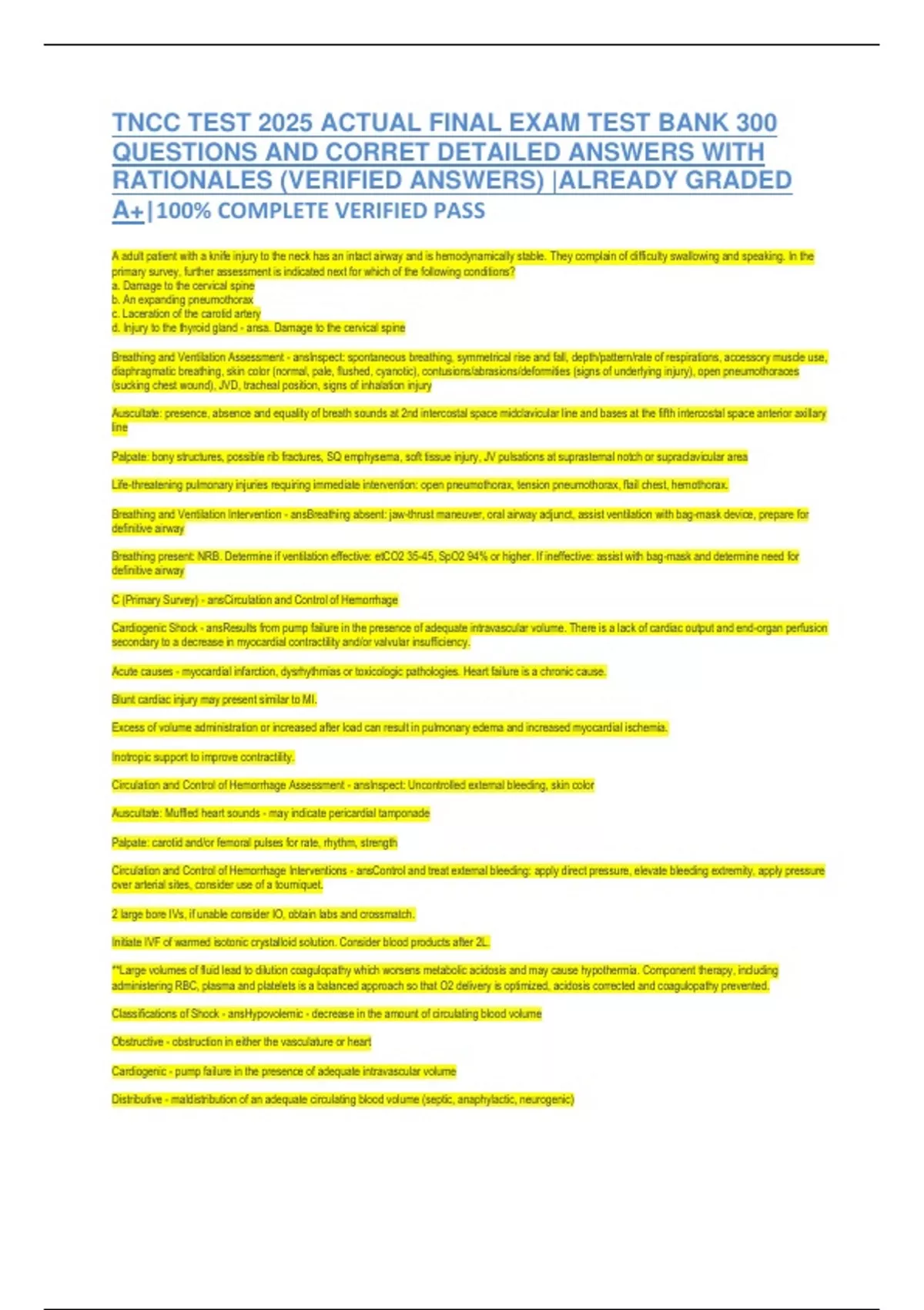 TNCC TEST 2025 ACTUAL FINAL EXAM TEST BANK 300