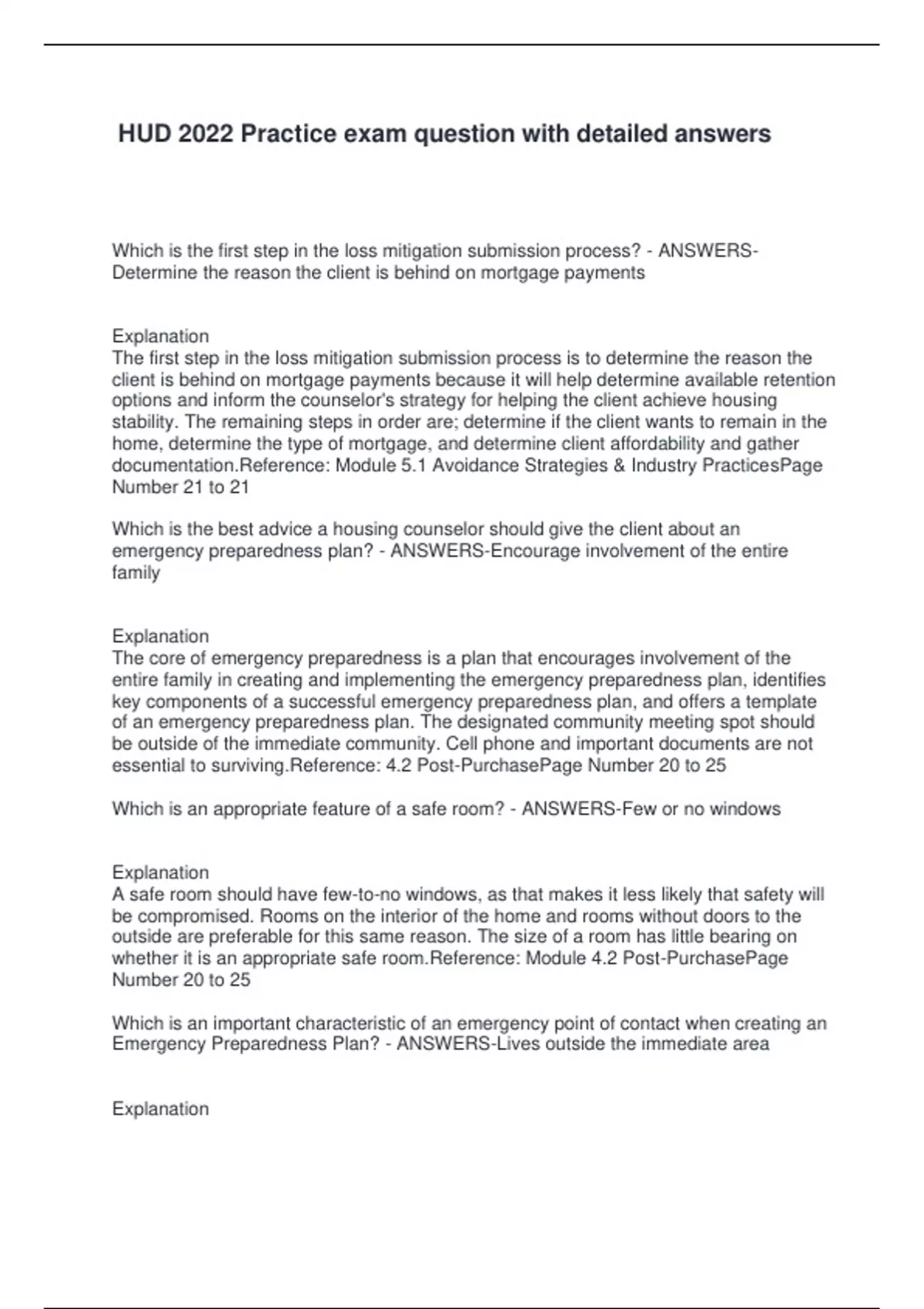 whether it is an appropriate safe room.Reference: Module 4.2 Post-PurchasePage
