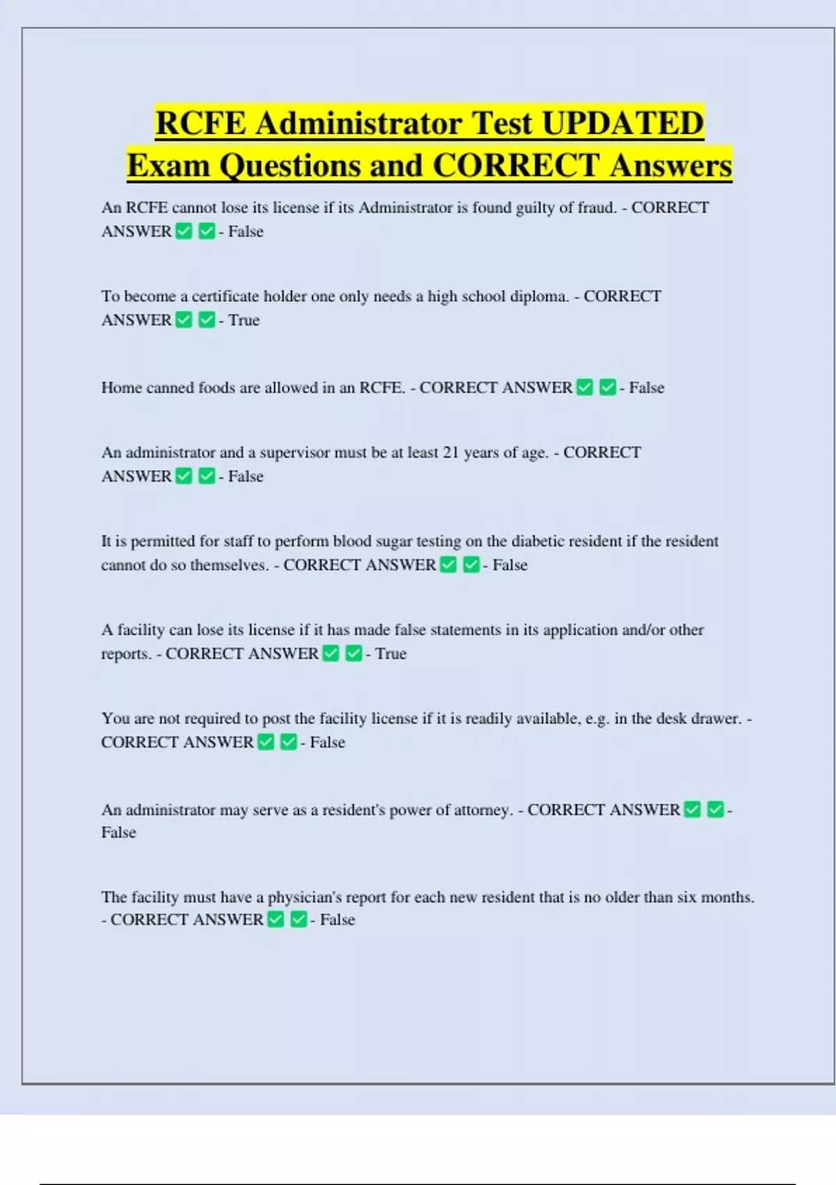Home canned foods are allowed in an RCFE. - CORRECT ANSWER - False