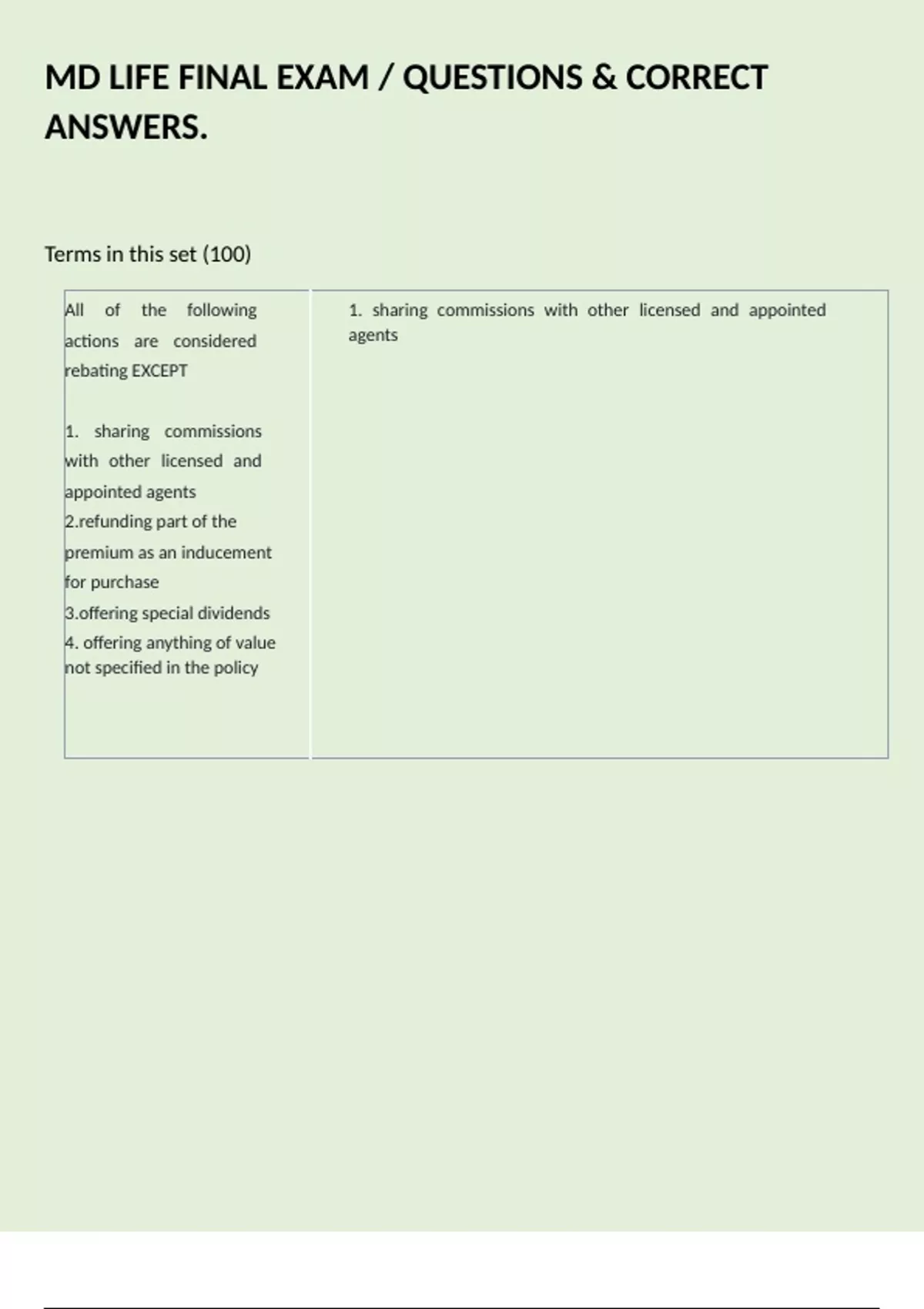 MD LIFE FINAL EXAM / QUESTIONS & CORRECT