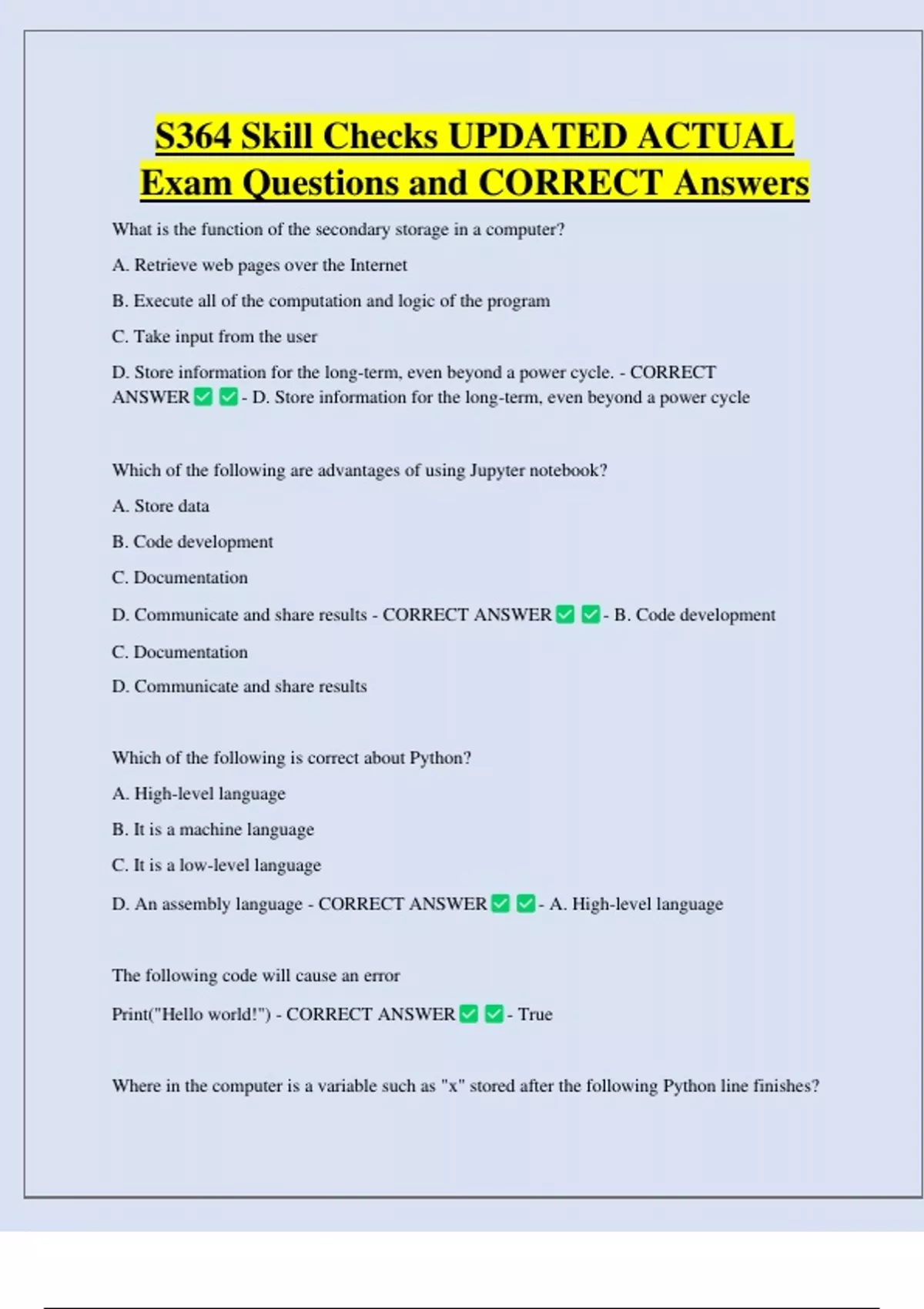 Exam Questions and CORRECT Answers
