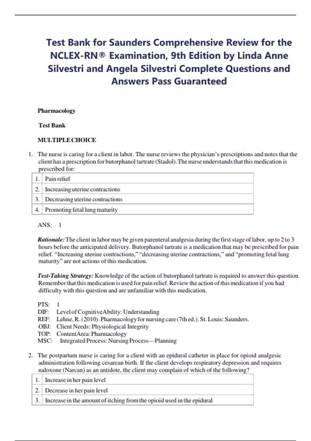 Test Bank for Saunders Comprehensive Review for the NCLEX-RN® Examination, 9th Edition by Linda Anne Silvestri and Angela Silvestri Complete Questions and Answers Pass Guaranteed