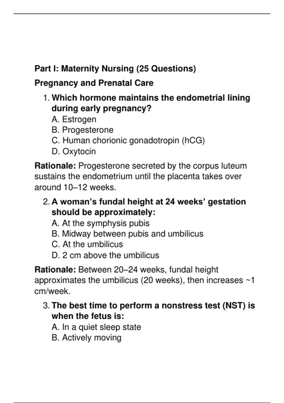Comprehensive Maternity & Pediatric Nursing MCQ Mastery Description Prepare confidently for your nursing exams with our curated set of 50 high-yield multiple-choice questions and detailed rationales based on Leifer’s Introduction to Maternity and Pediatric Nursing, 8th Edition. Covering everything from prenatal care and labor management to pediatric growth, developmental milestones, and common childhood disorders, this resource is designed to reinforce core concepts, enhance critical thinking, and boost your test-taking skills. Whether you’re reviewing for school assessments, NCLEX practice, or professional development, these questions will help you identify knowledge gaps and solidify your understanding of both maternity and pediatric nursing essentials. Hashtags #Maternity (Top 5 trending maternity hashtag) IQ Hashtags #PediatricNurse (Best pediatric nurse hashtag) Best Hashtags #NurseLife (Most used nursing lifestyle hashtag) Best Hashtags #NursingSchool (High-engagement hashtag for nursing students) Best Hashtags #Healthcare (Common healthcare community hashtag) Best Hashtags